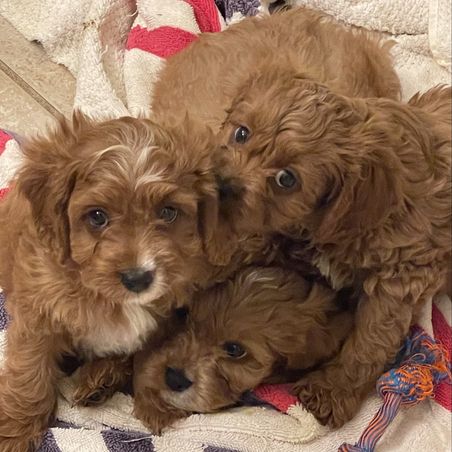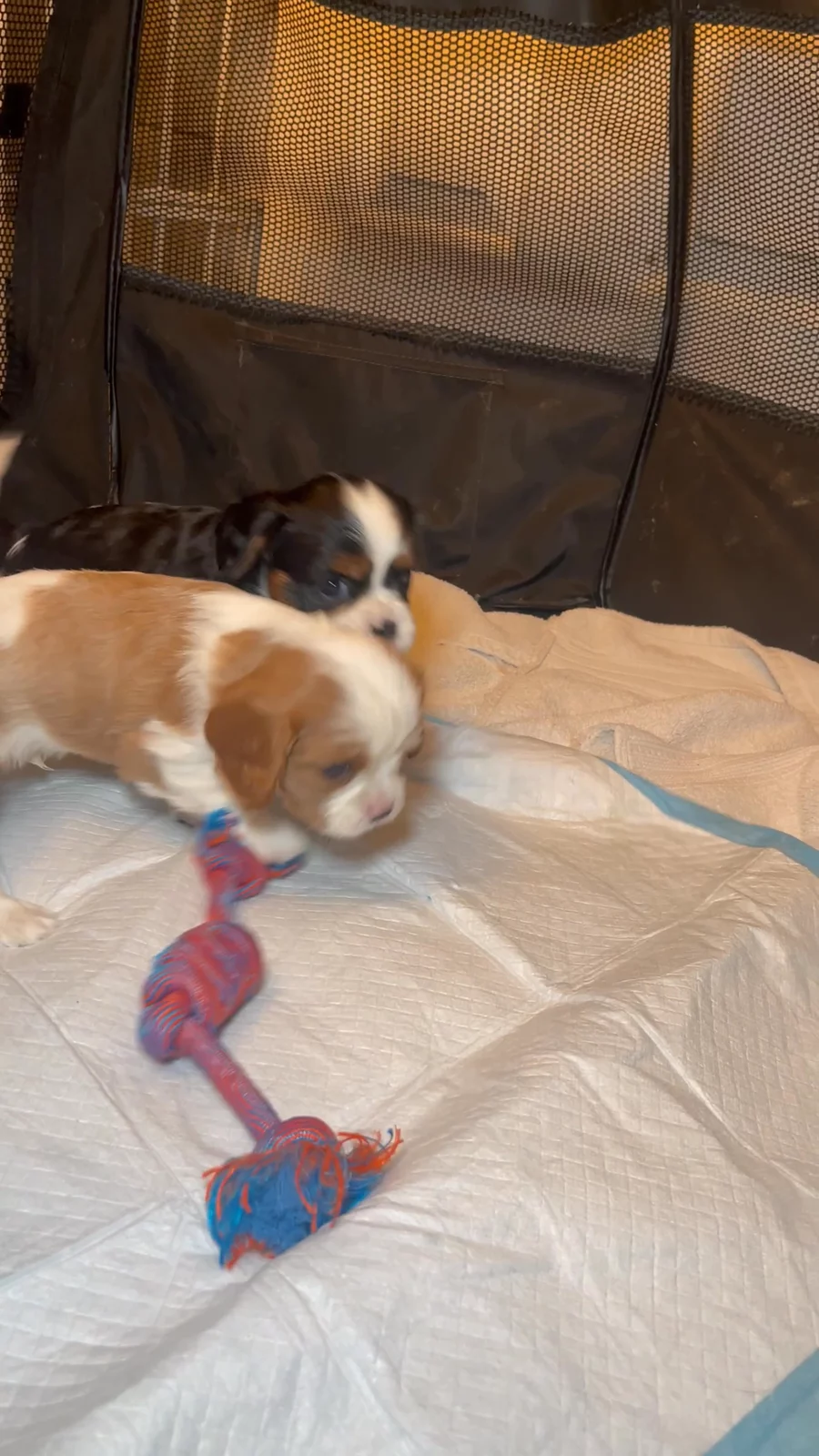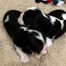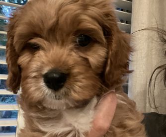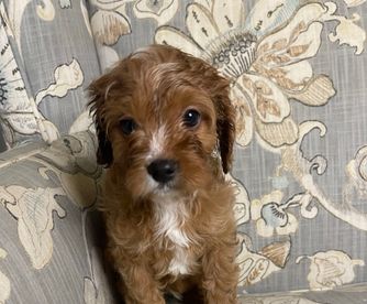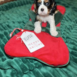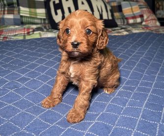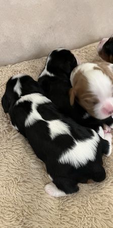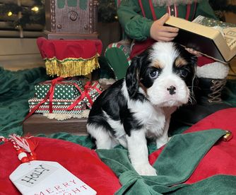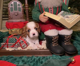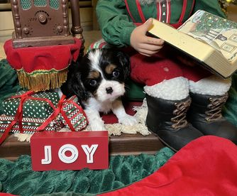 Our Cavapoo puppies are blenheim. Cavalier King Charles Spaniel puppies include blenheim and tri-color. Colors will vary depending on the parent dogs.