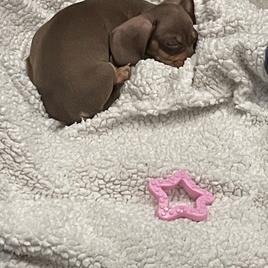 Alice is a female Dachshund. Carefully selected as a great representative of her breed, Travis decided to make her part of their program. Travis has passed Good Dog’s screening process, which involved a review of their breeding practices, environment, and the mental and physical health of their dogs.