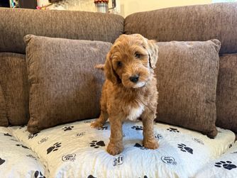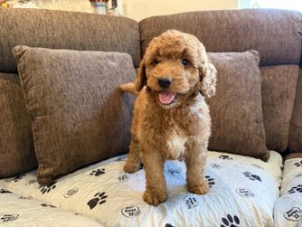 I'm Andrew M., the breeder behind CaliDoodles located in Fresno, CA. We are a homeschooling family that adores our girl, Ruby, the Goldendoodle. We offer quality pups from our loving home to yours! The Goldendoodle is a friendly, intelligent, and confident breed with a happy expression that is engaging and welcoming to strangers. Their loyalty and eagerness to please make them the perfect companion dog.