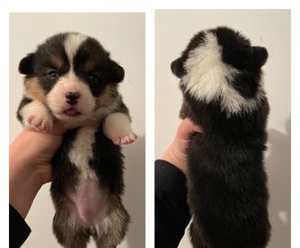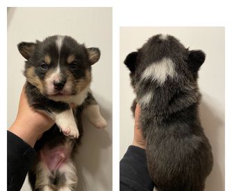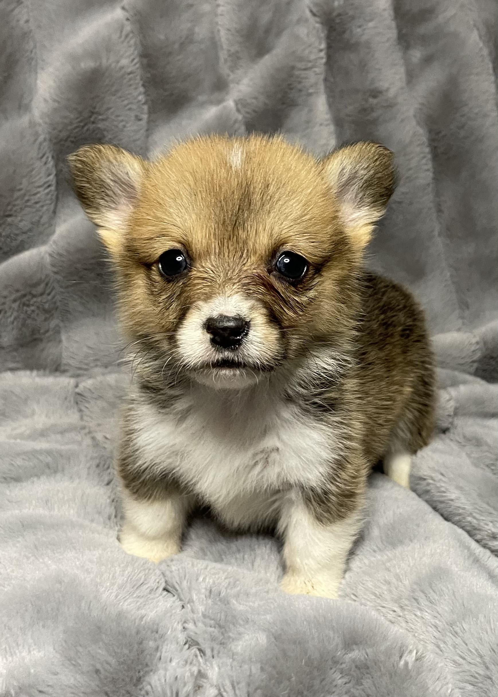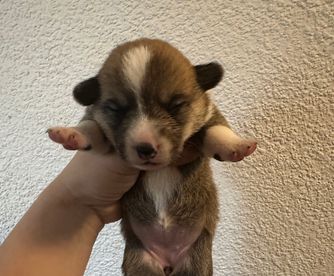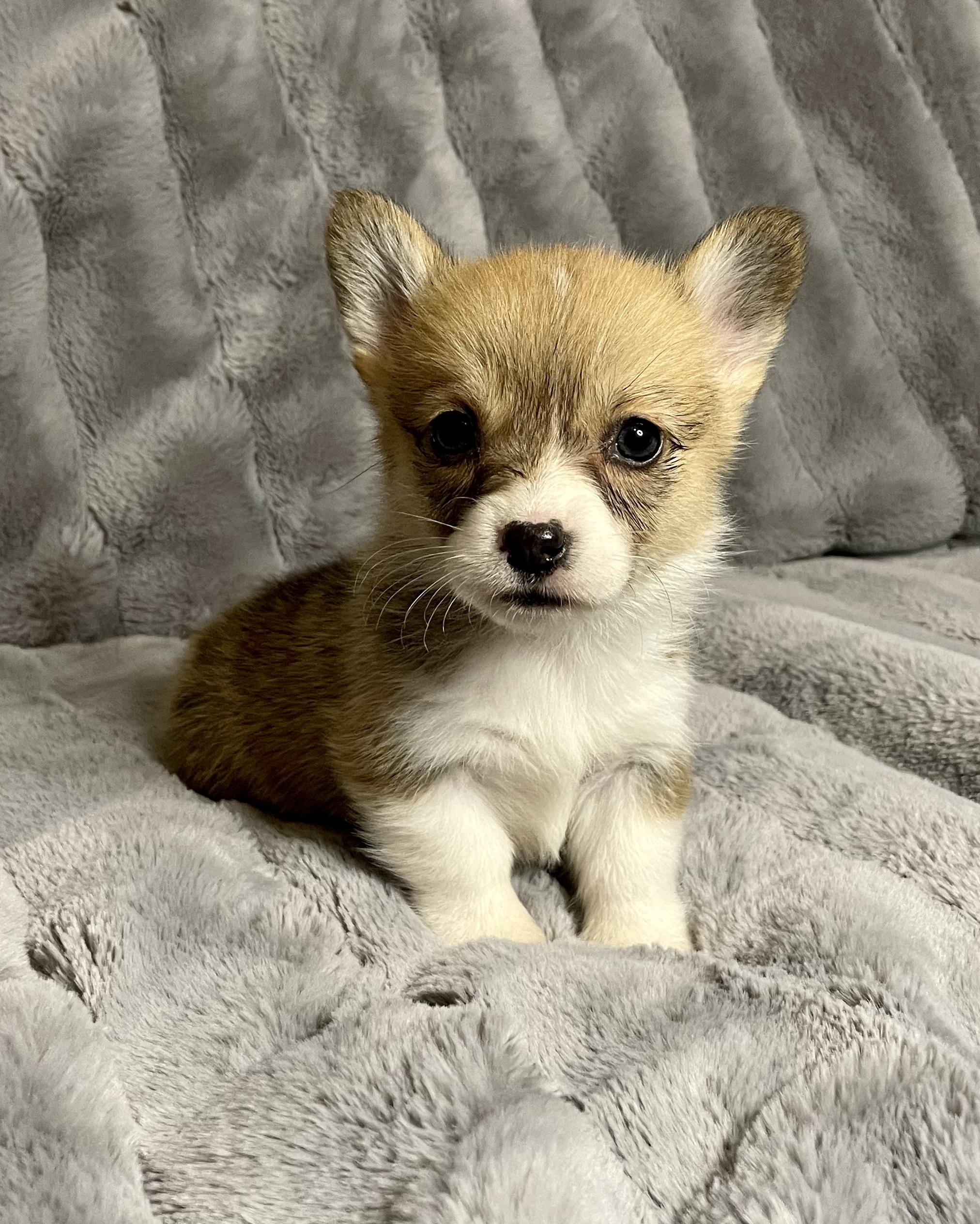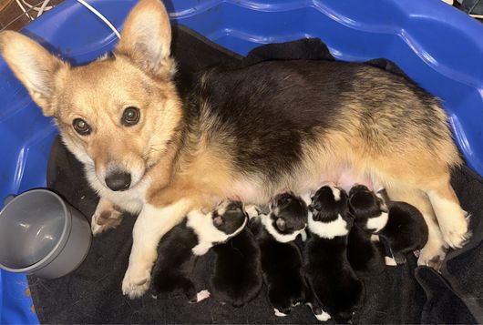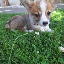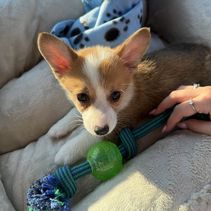 We had a great experience with Calie. She was always quick to respond with questions and sent regular pictures of our puppy while we waited to get him. At pick up, he came with plenty of food to start his life with us, vitamins, a blanket with his mom’s scent (all in a cute corgi bag). Our corgi has had a great first few days with us and we are in love with our beautiful, sweet boy!