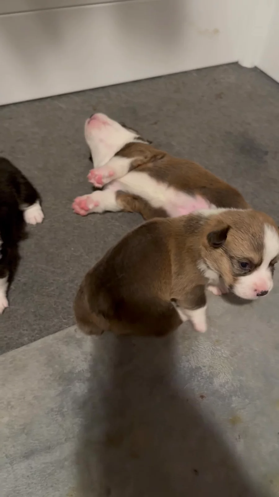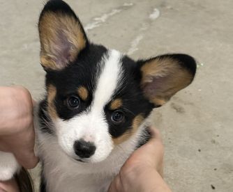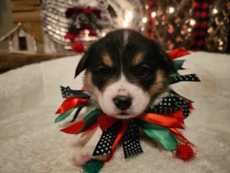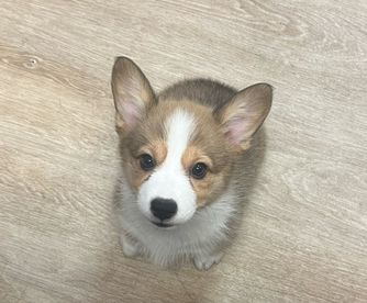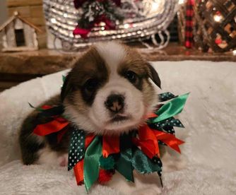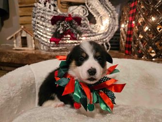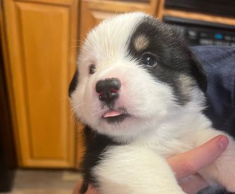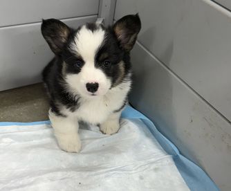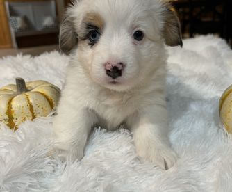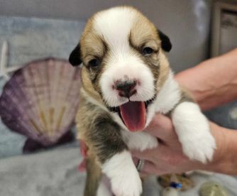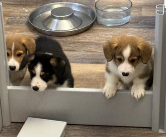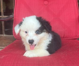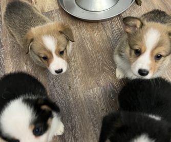 Our Pembroke Welsh Corgi puppies include sable, white and red, and black and tan. Cardigan Welsh Corgi puppies are blue merle and white. Colors will vary depending on the parent dogs.