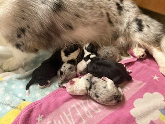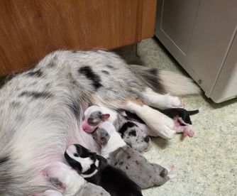 Midge is a blue Merle with a calm temperament and sweet gentle disposition. Genetic health tested and registered ckc