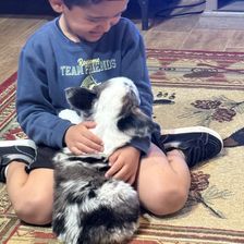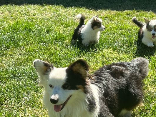 Elsa is a gentle natured, sweet, and loving cardigan fluffy Merle corgi with tail ! She is health tested and clear on a panels