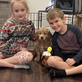 Margareth was an amazing breeder to work with when picking out our fur baby! She answered my questions in a timely manner and always went above and beyond in her explanations. She sent weekly emails with “pup” dates and pictures all the way up until pick up day. We cannot thank her enough for being an excellent person to work with. We are so in love with our puppy, Duke! He is so cute, happy, playful, and well-behaved. He has done so well with our two children. We couldn’t be happier with our new addition to the family.