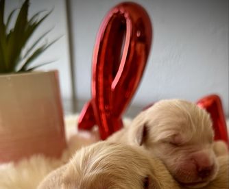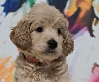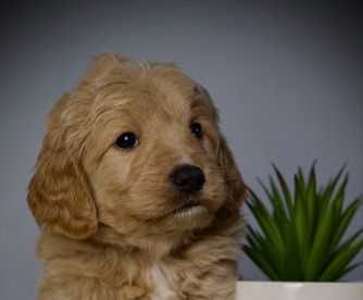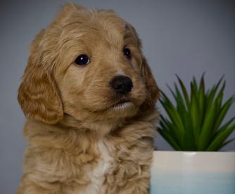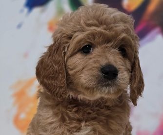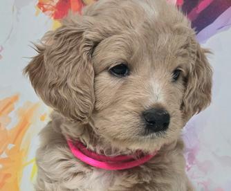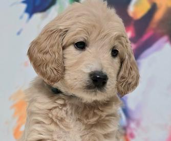 Our Goldendoodle puppies include cream, apricot, and red. Golden Retriever puppies include golden and light golden. Colors will vary depending on the parent dogs.