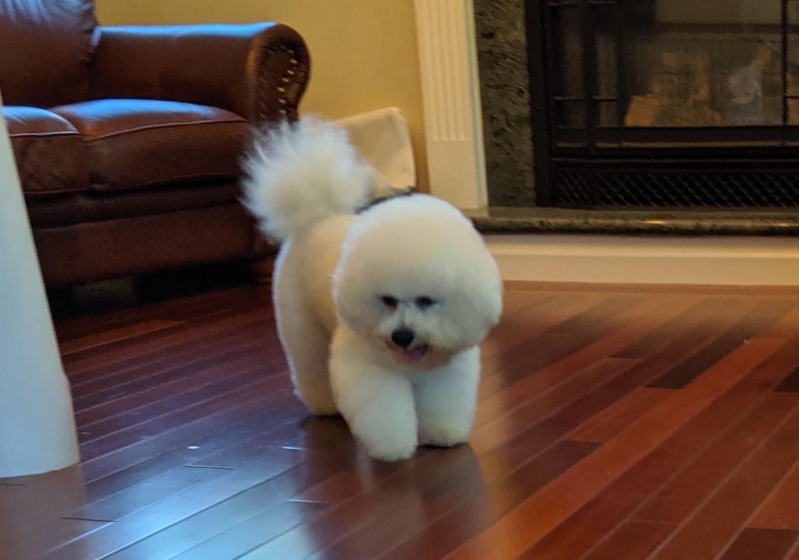 Monsieur Giorgio is a male Bichon Frise. Carefully selected as a great representative of his breed, Adrienne decided to make him part of their program. Adrienne has passed Good Dog’s screening process, which involved a review of their breeding practices, environment, and the mental and physical health of their dogs.