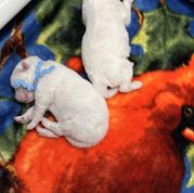 Our puppies include white and biscuit, white, and cream. Colors will vary depending on the parent dogs.