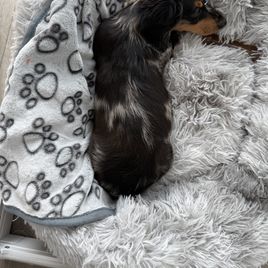 “Price includes ACA or AKC registration, microchip, pre-delivery vet check. Up to date on vaccinations and wormer. We also include a swag bag with starter food, toys, and a blanket. Dachshunds love their blankets! All of our puppies require the same deposit regardless of sex, color, size or age.”