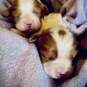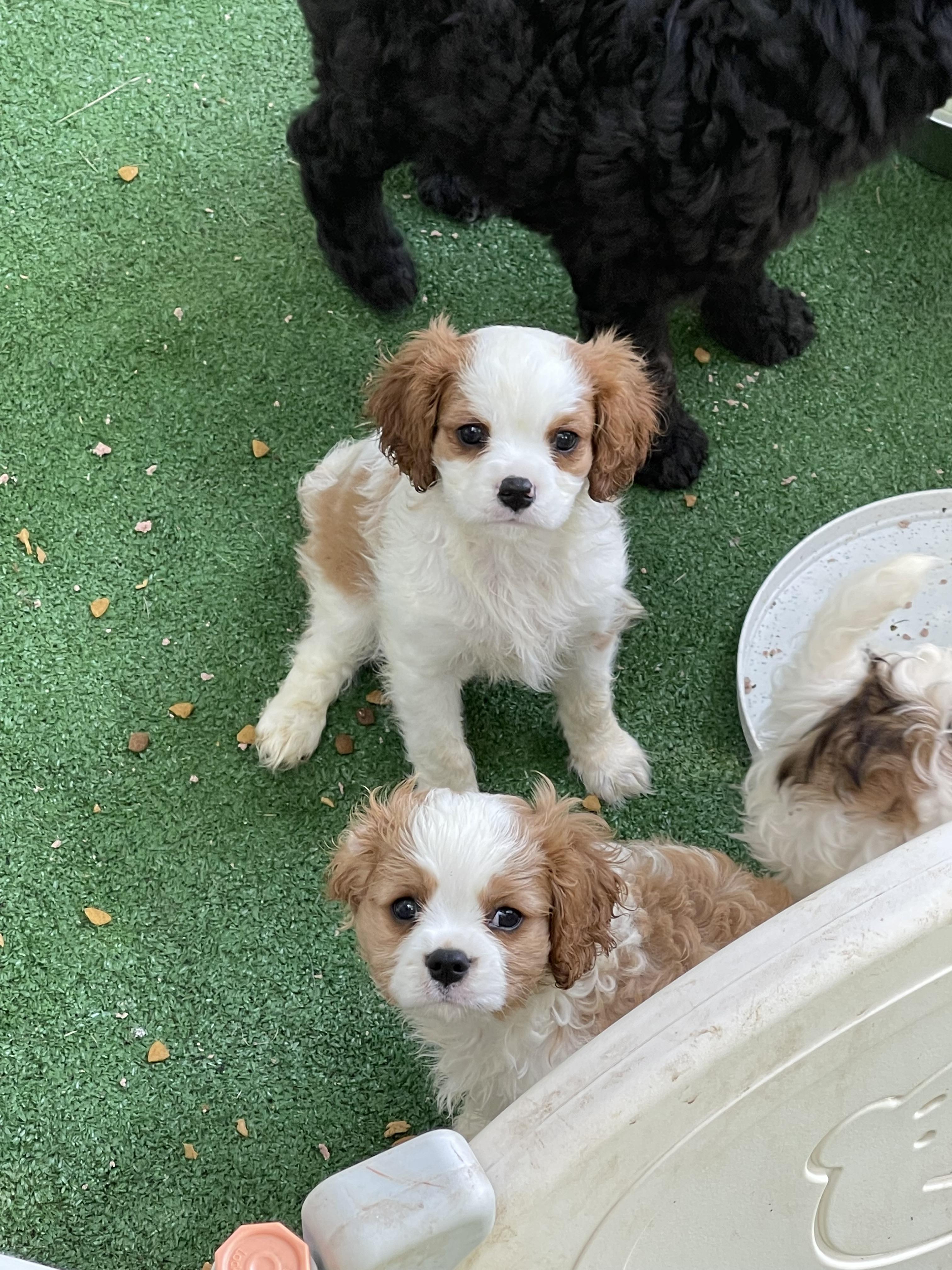 Our puppies include blenheim, tri-color, black and tan, and black and white. Colors will vary depending on the parent dogs.