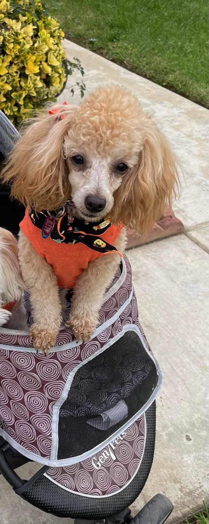 Chili pepper is a female Poodle. Carefully selected as a great representative of her breed, Mary decided to make her part of their program. Mary has passed Good Dog’s screening process, which involved a review of their breeding practices, environment, and the mental and physical health of their dogs.
