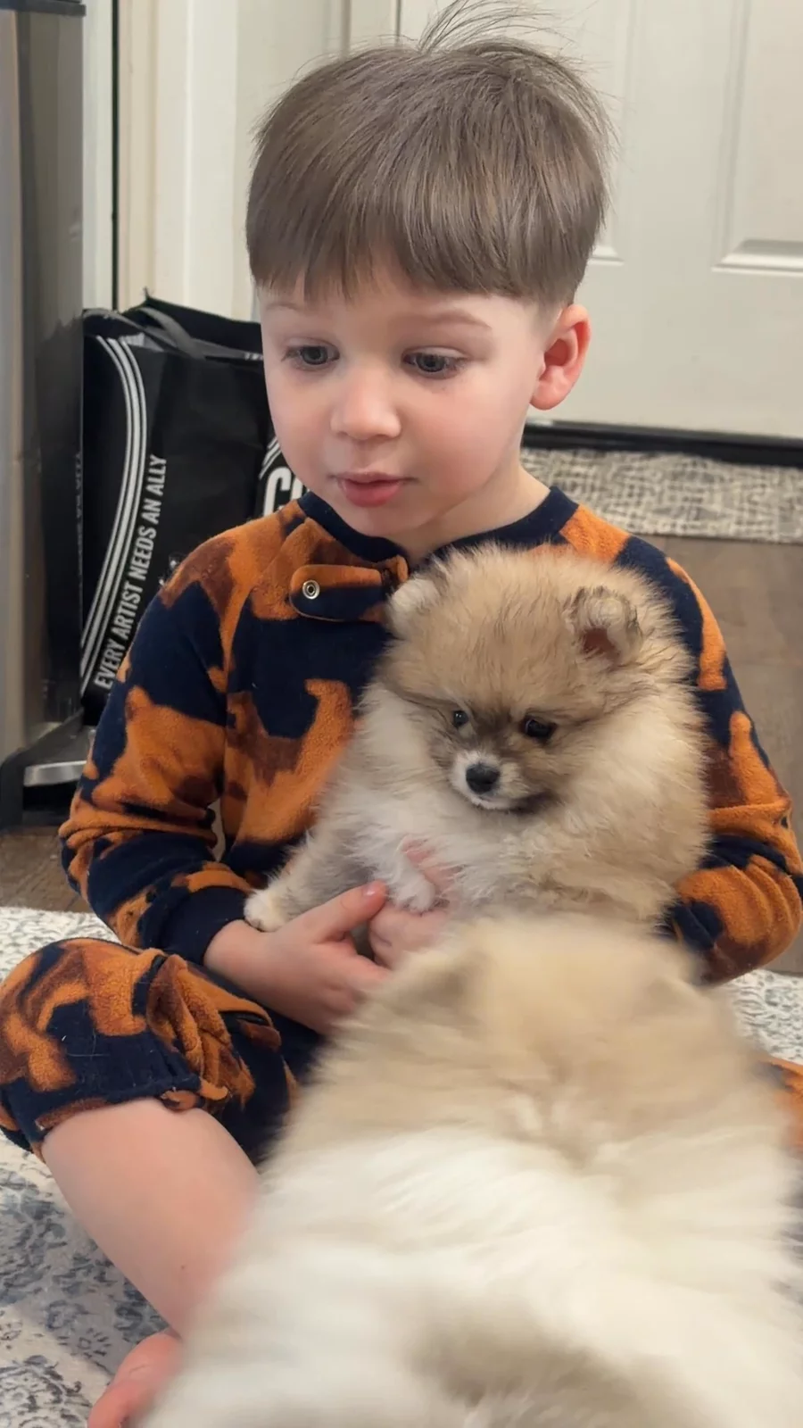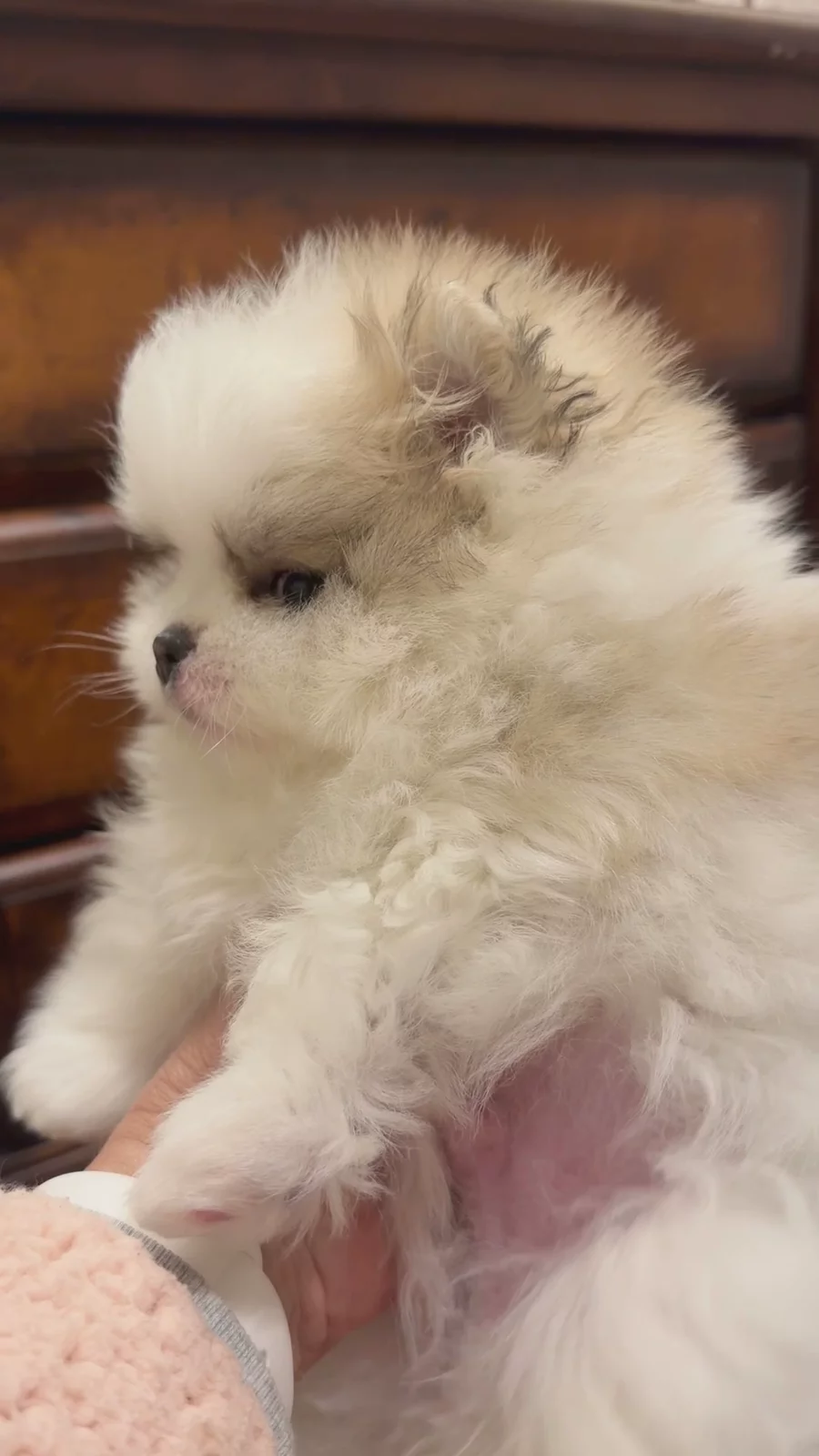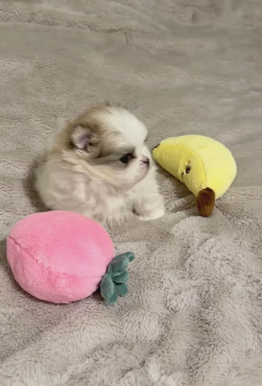 At 7 weeks old, this parti-color Pomeranian is basically a tiny, living marshmallow. Whether it’s playtime or nap time, this puppy just wants to be wherever you are. We’ve fallen head-over-heels for those unique spots and that "super fluffy" coat, and we know you will too! ☁️💖