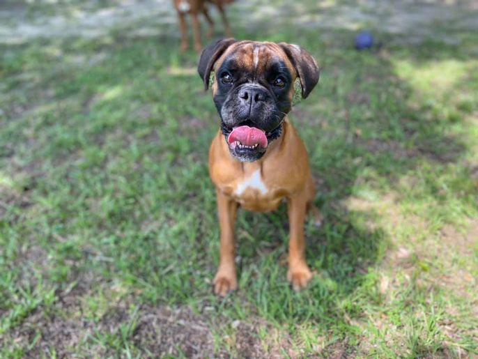 Thanos is a male Boxer. Carefully selected as a great representative of his breed, Matthew decided to make him part of their program. Matthew has passed Good Dog’s screening process, which involved a review of their breeding practices, environment, and the mental and physical health of their dogs.