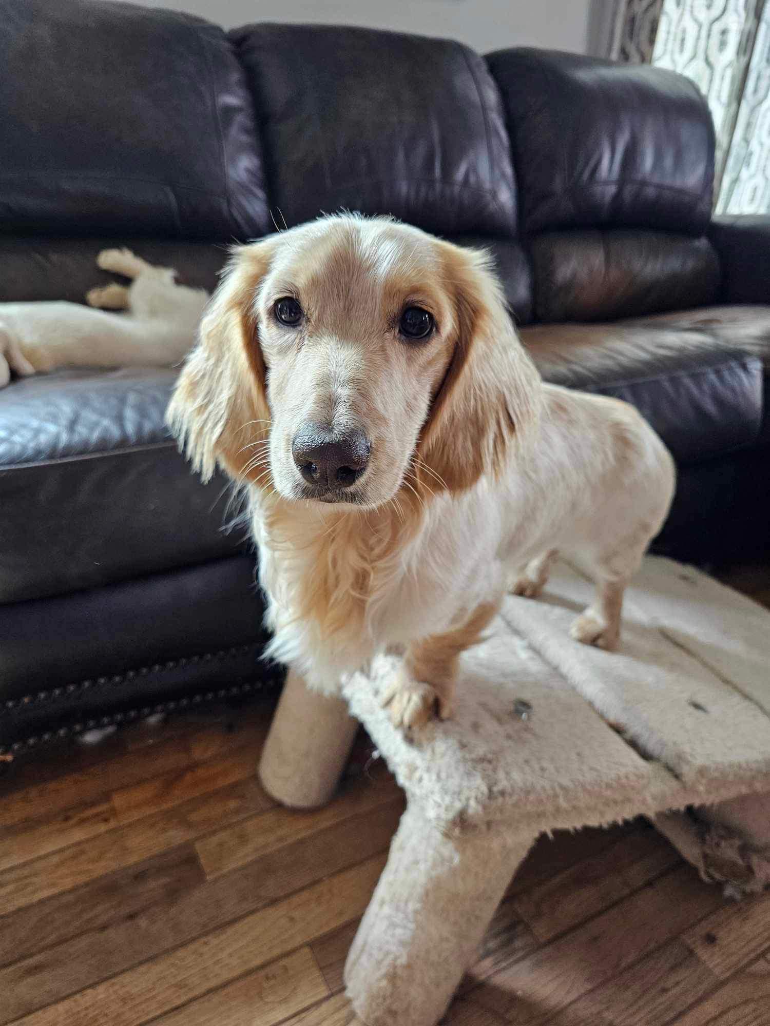 Itty is a female Dachshund. Carefully selected as a great representative of her breed, Grace decided to make her part of their program. Grace has passed Good Dog’s screening process, which involved a review of their breeding practices, environment, and the mental and physical health of their dogs.