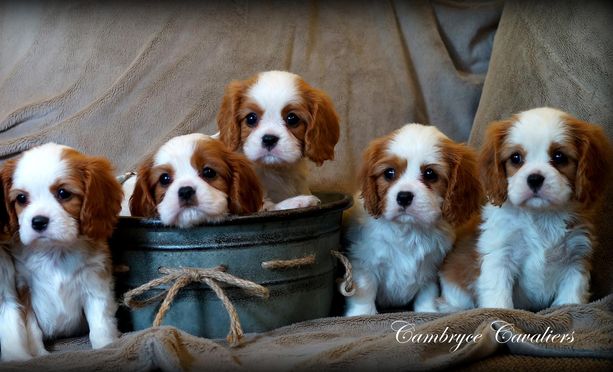 Our puppies include blenheim and tri-color. Colors will vary depending on the parent dogs.