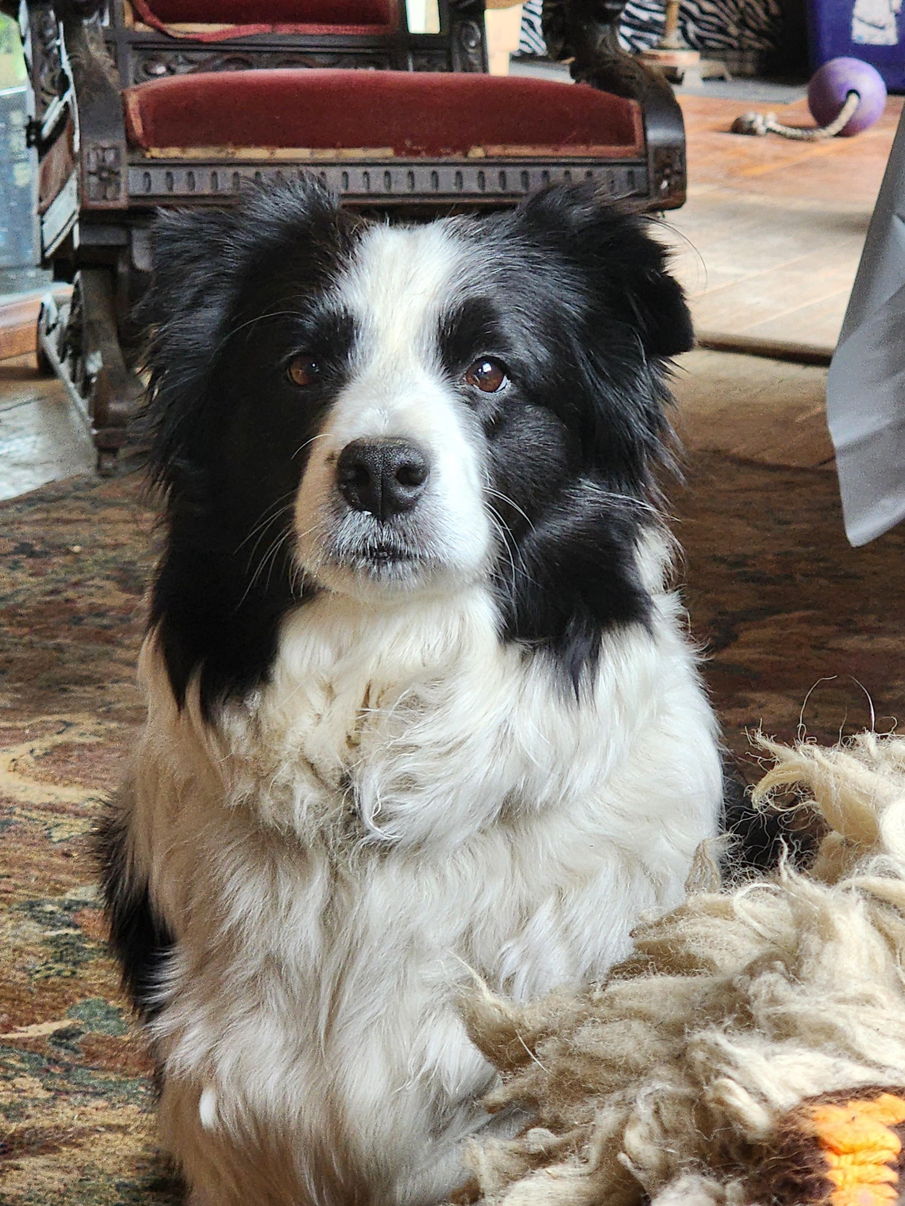 Poppy is a larger framed girl with lovely movement. She is very sweet and soft natured. Although I didn't have time to show her, she comes from a long line of internationally champion dogs. She is a snuggler,talker and sometime counter surfer. She has a good stalk,loves water and likes Frisbee.