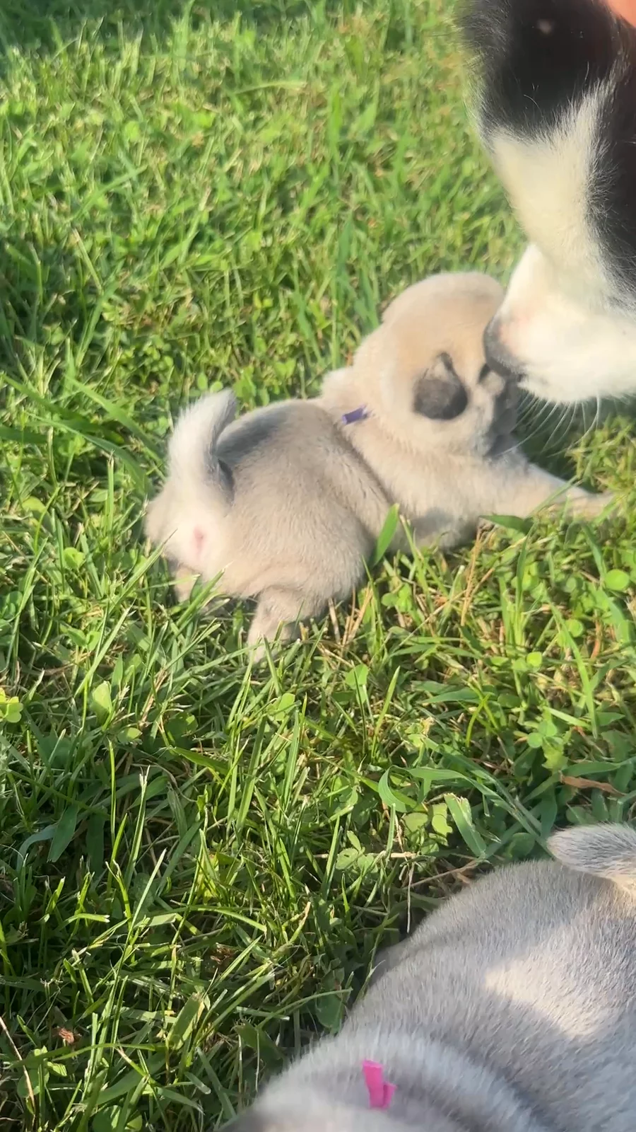 Phoenix and Pooh’s little girls are three weeks old today. They got to get out and play with mommy and paw-ma (Gma) tonight. Still a little wobbly and end up on their backs a lot, but they’re learning. Doesn’t help that they are well-nutritioned…. To put it nicely.