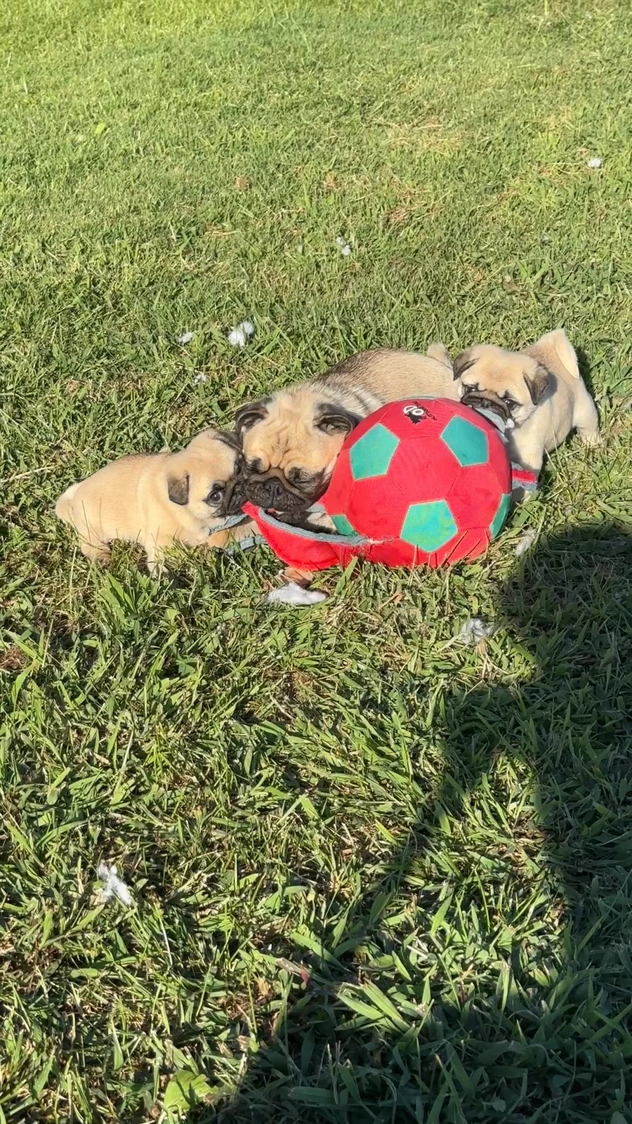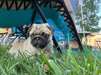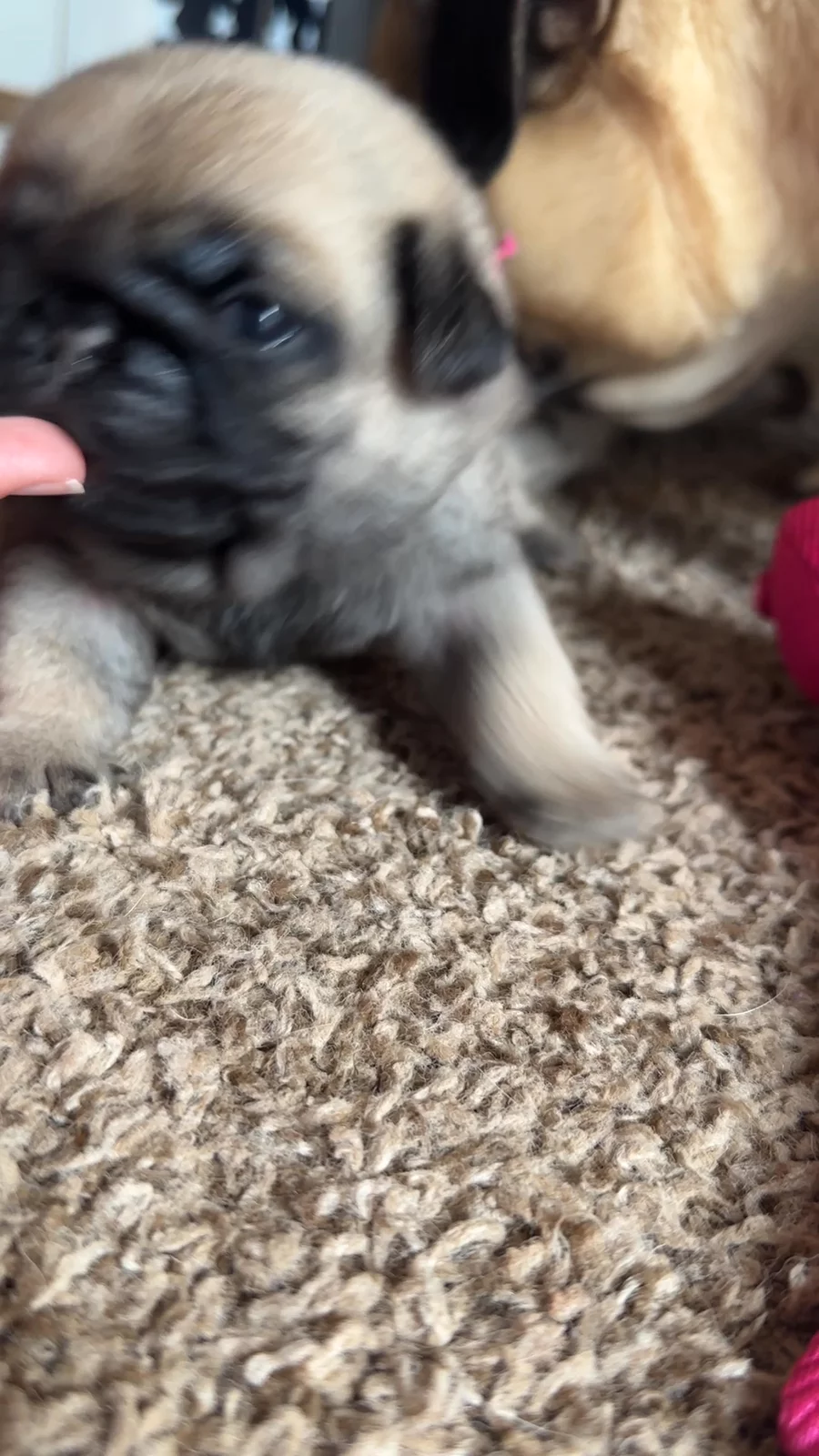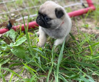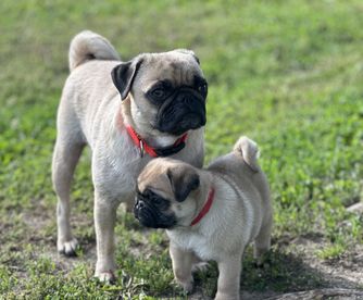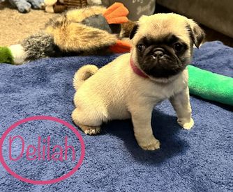 I raise my pugs in my home. They are not kept in pens or on chains. When the babies are old enough to walk, I spend a few minutes every evening with each one of them individually. They get to play with me and run around and grow their curiosities. They get to develop personalities, which also helps me pair them up with their very own human. They just want to love and be loved!