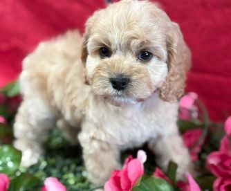 Our Cockapoo puppies include brown white and tan, sable, buff and white, red and white, red, cream, golden, buff, brown and tan, brown, black and tan, and black. Cocker Spaniel puppies are buff. Poodle puppies include apricot, cream, red, and parti. Colors will vary depending on the parent dogs.