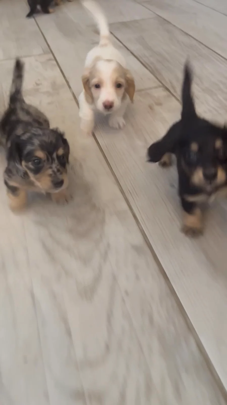 Now, Sally, Forest, and Jenny spend their evenings playing together, and Forest and Jenny love going to work with me. This has been a fantastic experience, and I highly recommend Camie to anyone looking for a loving, sweet new Dachshund puppy to add to their family!