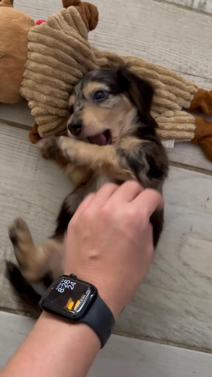 As time passed, I realized that Forest needed a Dachshund sibling, and truthfully, I did too! After exploring several options, I found “Girl #1” on the Good Dog website and immediately connected with Camie of Camie’s Dachshunds. She was incredibly responsive, answered all my questions, and made the entire process seamless. We arranged to meet in Georgia, where I picked up my new puppy, Jenny.