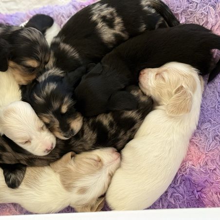 Our puppies include piebald, black and cream, and dapple. Colors will vary depending on the parent dogs.