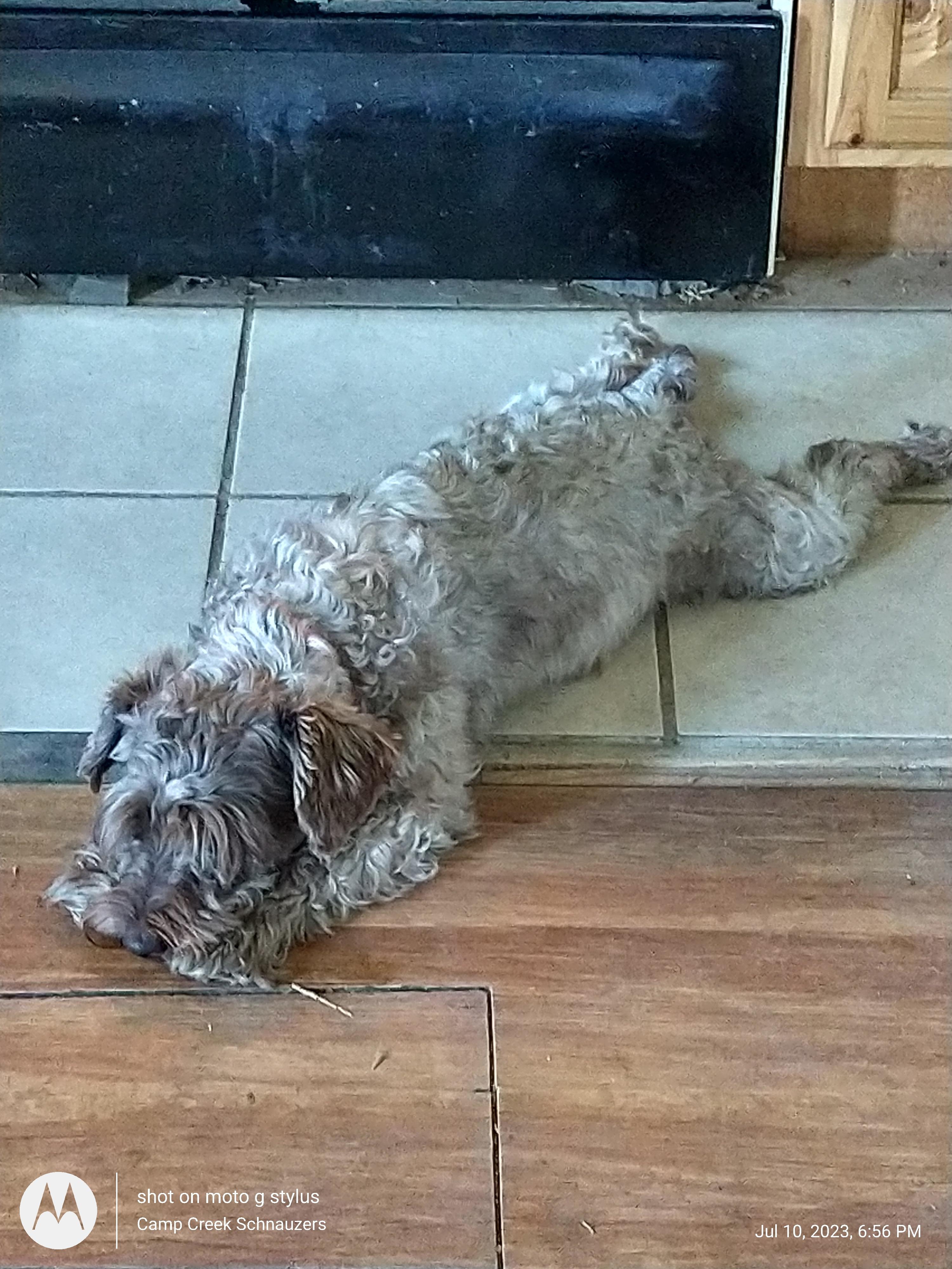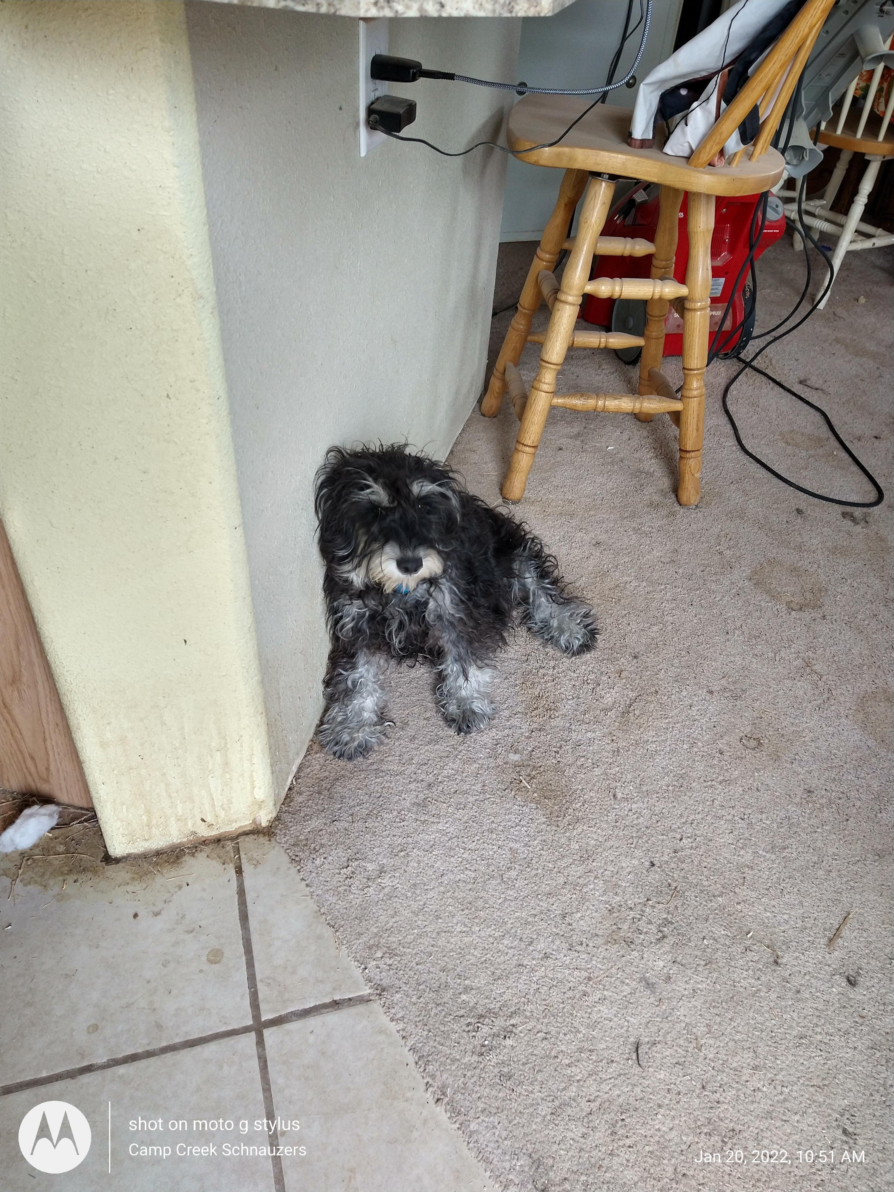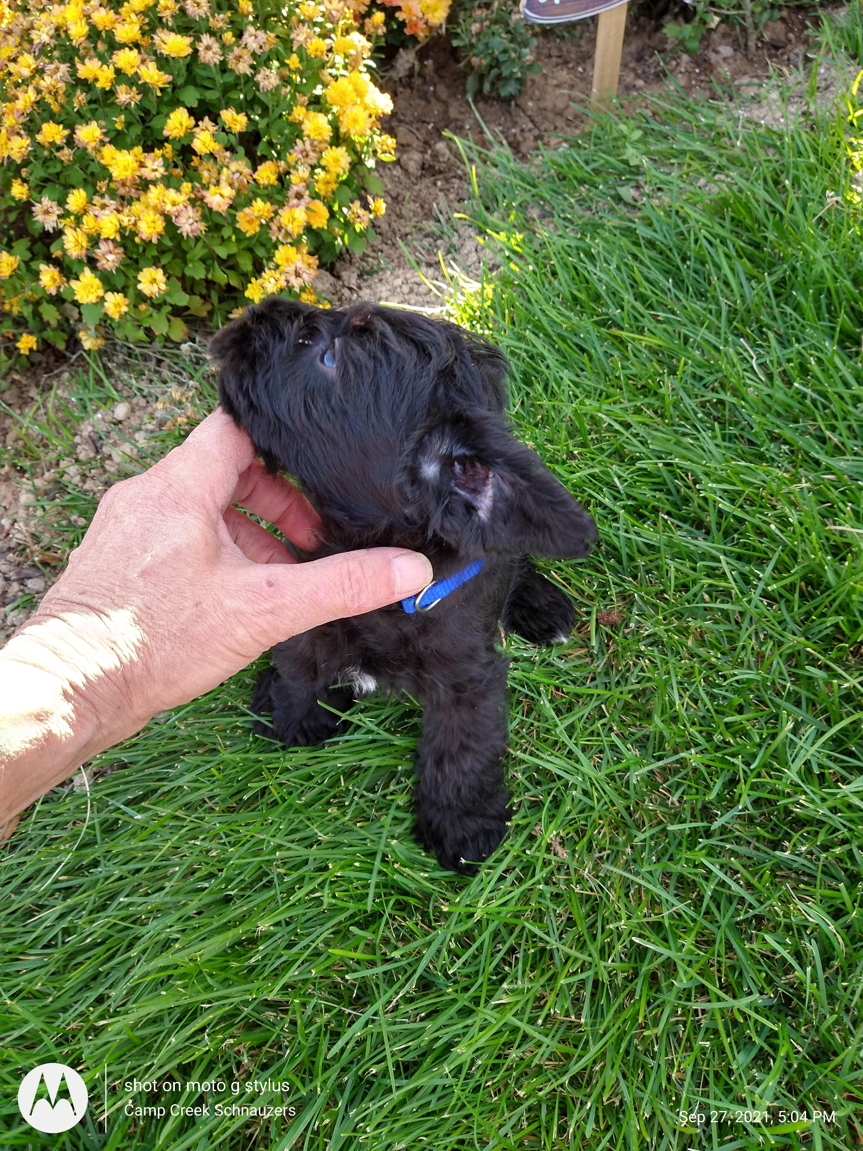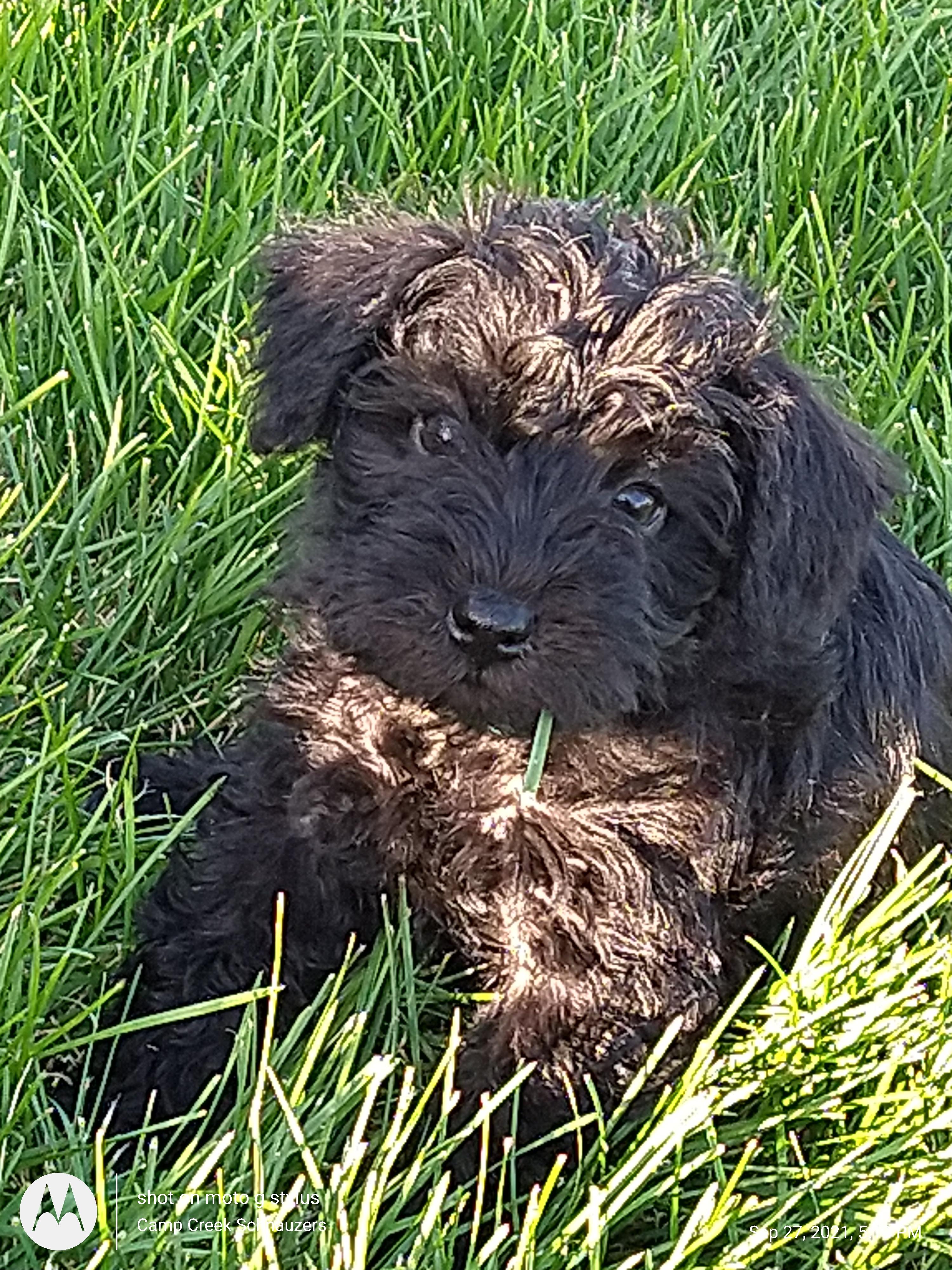 Trenton with Camp Creek Schnauzers kept me informed during the entire process. He puts a great deal of knowledge and love into the puppies. Our new puppy Broussard has already captured our hearts.