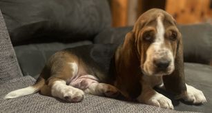 I'm Geri N., the breeder behind Camp Nuckols Basset Hounds located in Jonesborough, TN. We offer top quality basset hounds that have been raised in our home and are ready to be part of your family. Our dogs are bred to be a healthy loving part of your family. We strive for good confirmation, health and socialization. This litter was bottle fed and have been handled extensively from the start. They love attention! They have had their vet exam and shots at six weeks, have been wormed on schedule and will be ready for new homes 1/29.