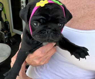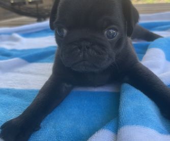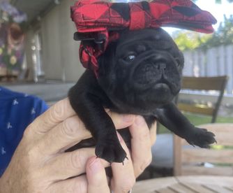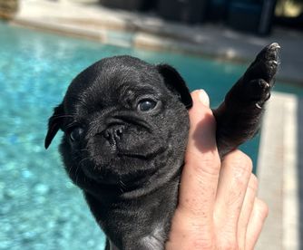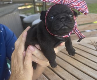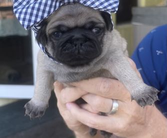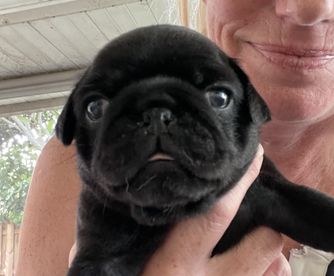 I allow prospective pug parents to visit the litter in my home at three weeks of age to choose their baby in person and then visit their baby each week after that to bond until they go home at eight weeks of age. Each pug goes home with papers, first shots, health certificate, a copy of The Everything Pug Book. I keep a pug chat to share pictures etc and stay in touch with my new extended pug family and grand pugs !!! ❤️