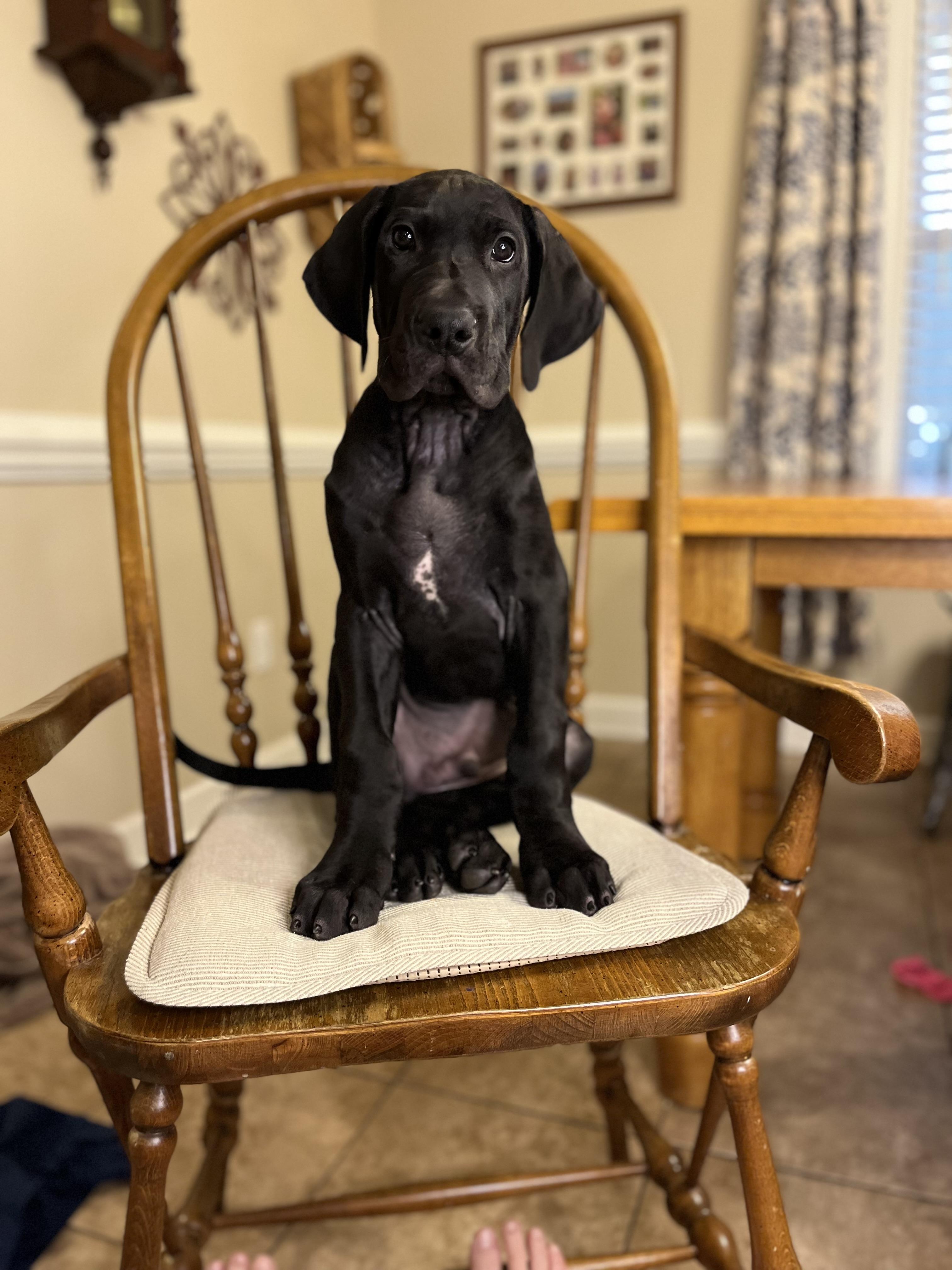 Macy is a female Great Dane. Carefully selected as a great representative of her breed, Michelle decided to make her part of their program. Michelle has passed Good Dog’s screening process, which involved a review of their breeding practices, environment, and the mental and physical health of their dogs.