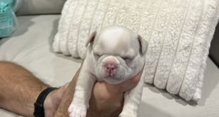 Our puppies include fawn and white. Colors will vary depending on the parent dogs.