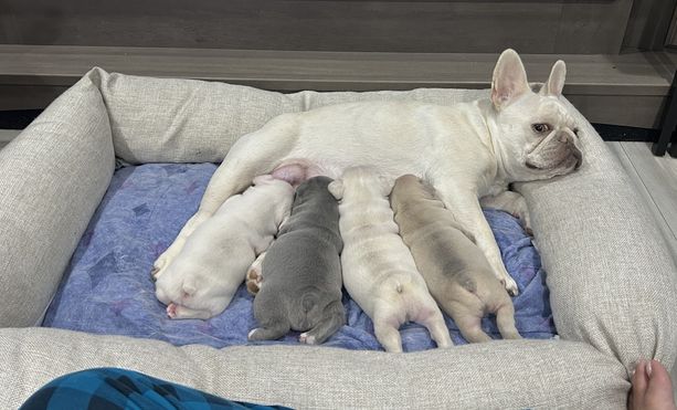I'm Darla D., the breeder behind Camper Puppy located in Estes Park, CO. We are new to breeding. We had a litter because we love our frenchies so much and wanted to create some beautiful offspring. Our first litter was bred with our platinum female and our blue bridle male. They have created gorgeous, plump, healthy puppies one blue, one fawn, and two platinum. We are doing camper life. Everywhere we go our pups go with us. They are treated just like family and usually a little better 😄.