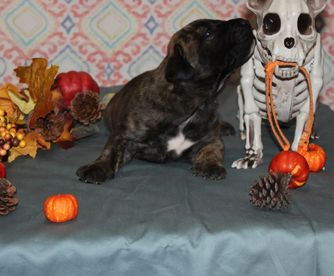 Our puppies include tiger and fawn. Colors will vary depending on the parent dogs.