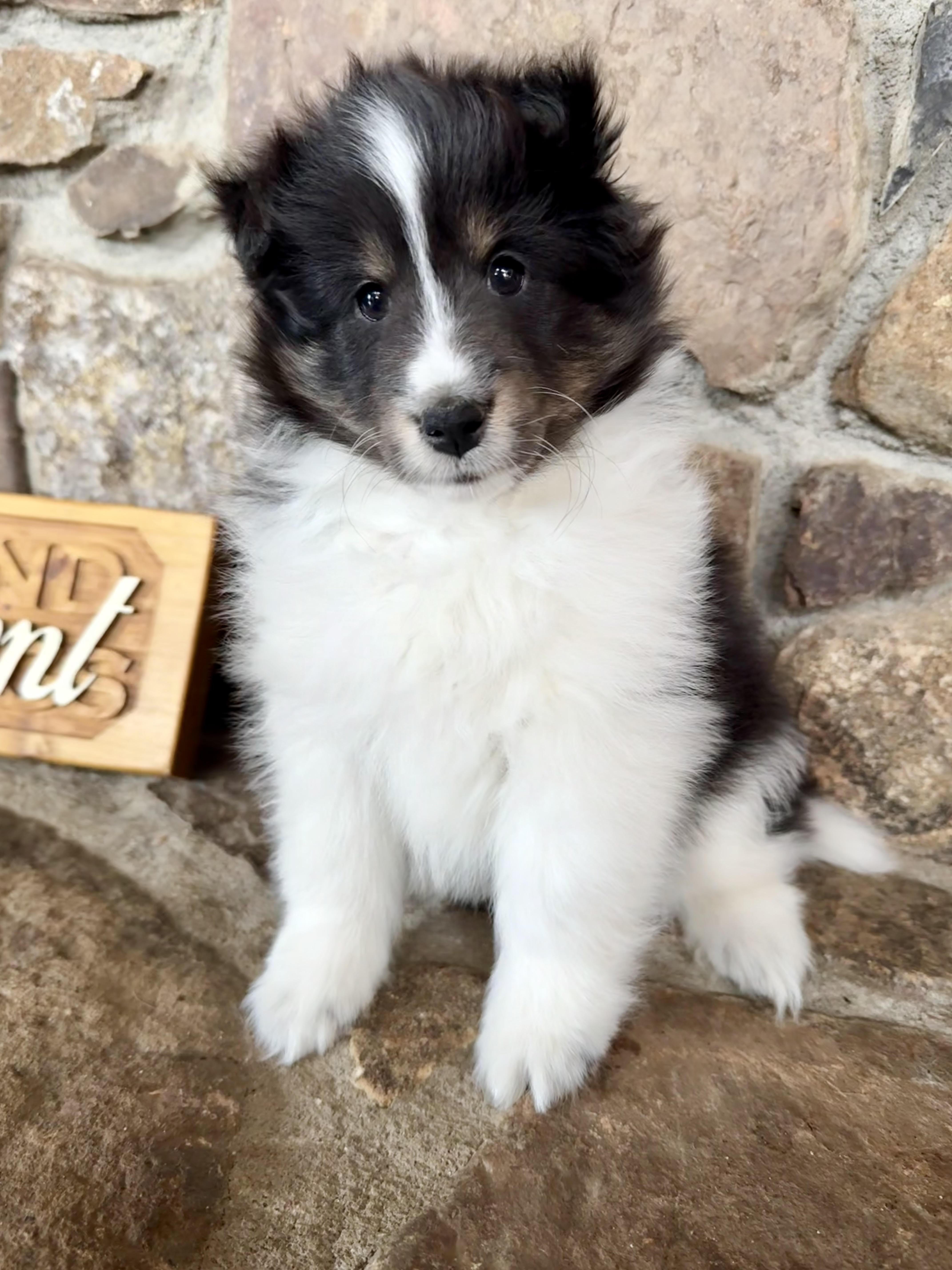 Our puppies include white and sable, black and white, blue merle and white, black white and tan, and sable and white. Colors will vary depending on the parent dogs.