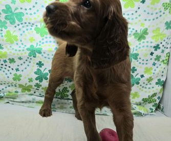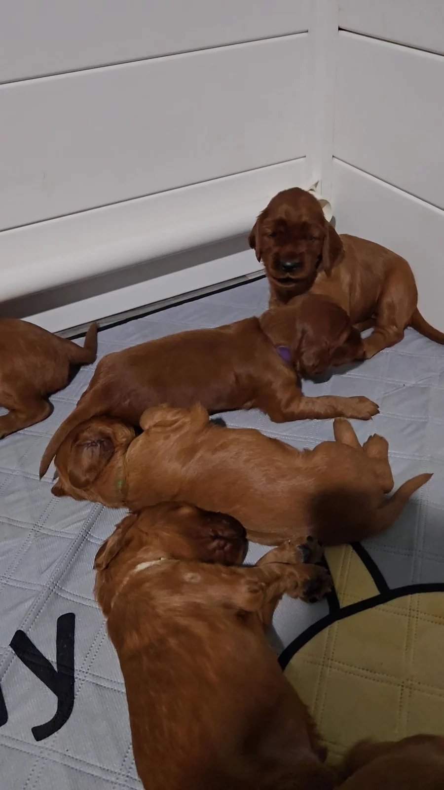I'm the breeder behind Candia Woods Irish Setters located in Candia, NH. We love this breed and the experience of having litters! Our mission is to raise pups that are set to become the best companions. We raise our litters in our home to help set the foundation for happy and confident puppies to transition well into their forever homes. It’s a privilege to have the opportunity to make an impact on each individual puppy!