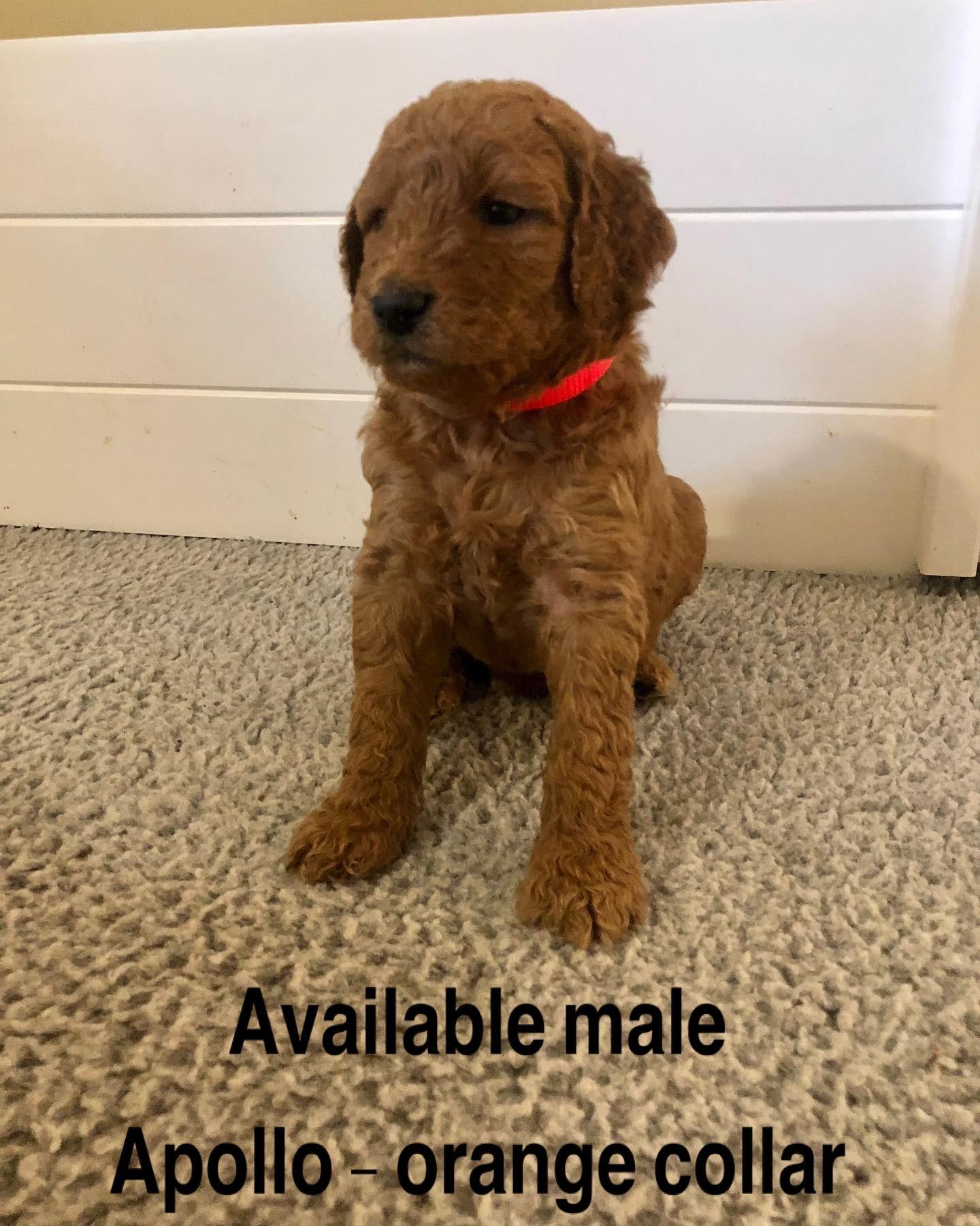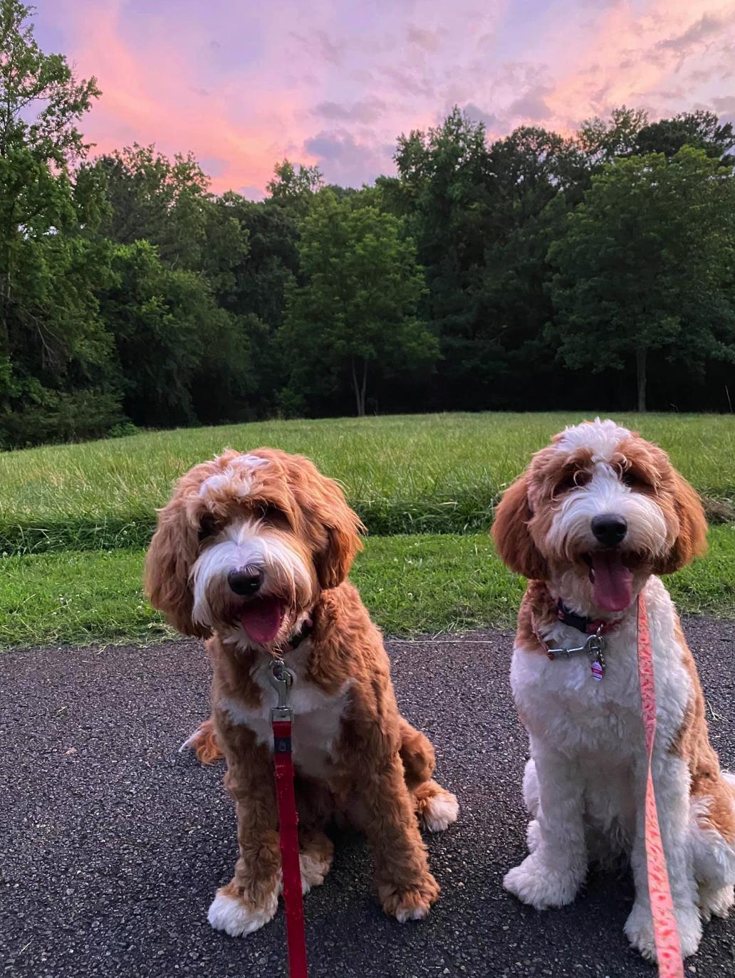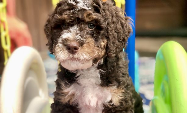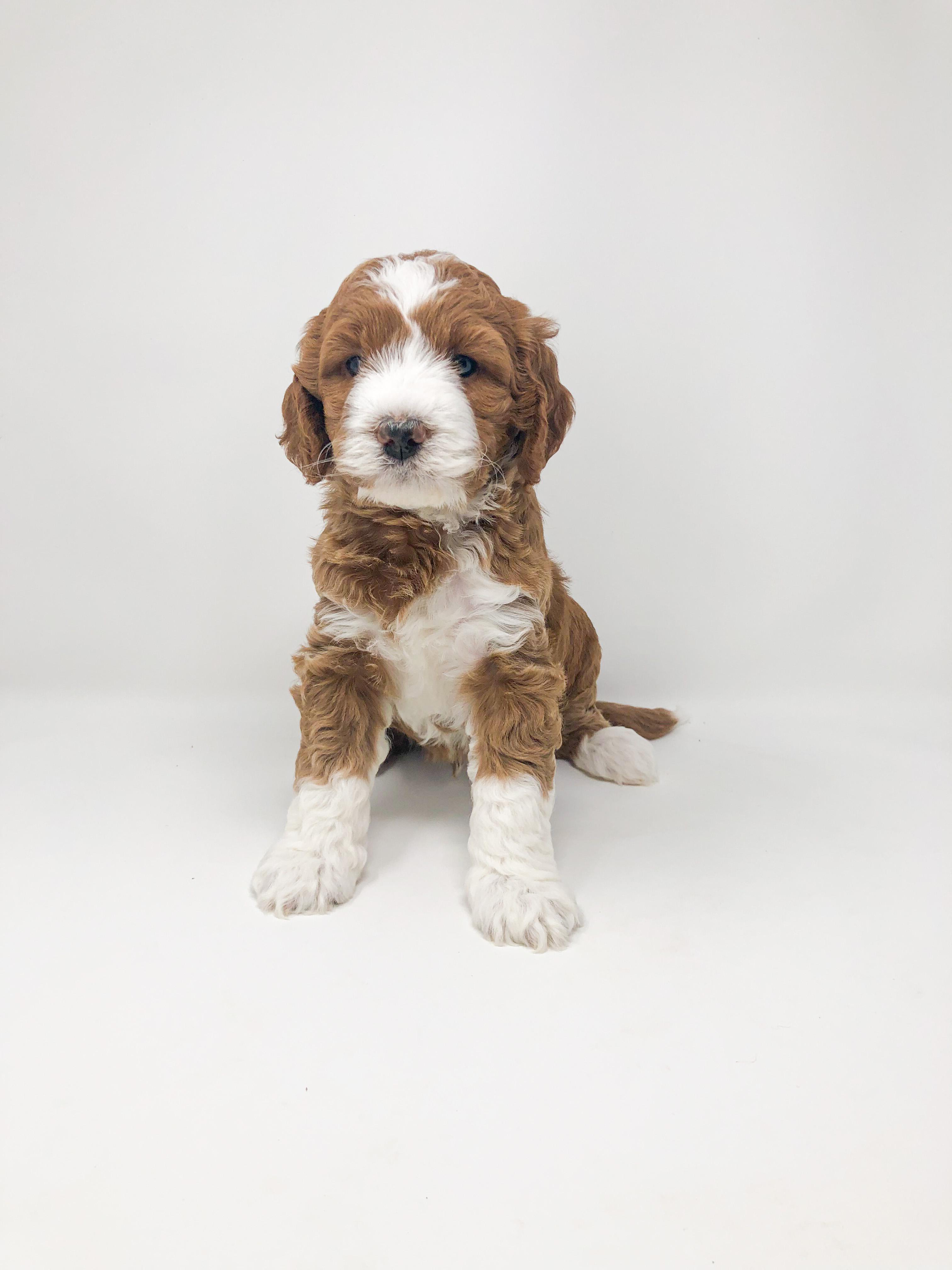 Our Bernedoodle puppies include tri-color, phantom, and merle. Goldendoodle puppies include apricot, red, chocolate, and parti. Colors will vary depending on the parent dogs.