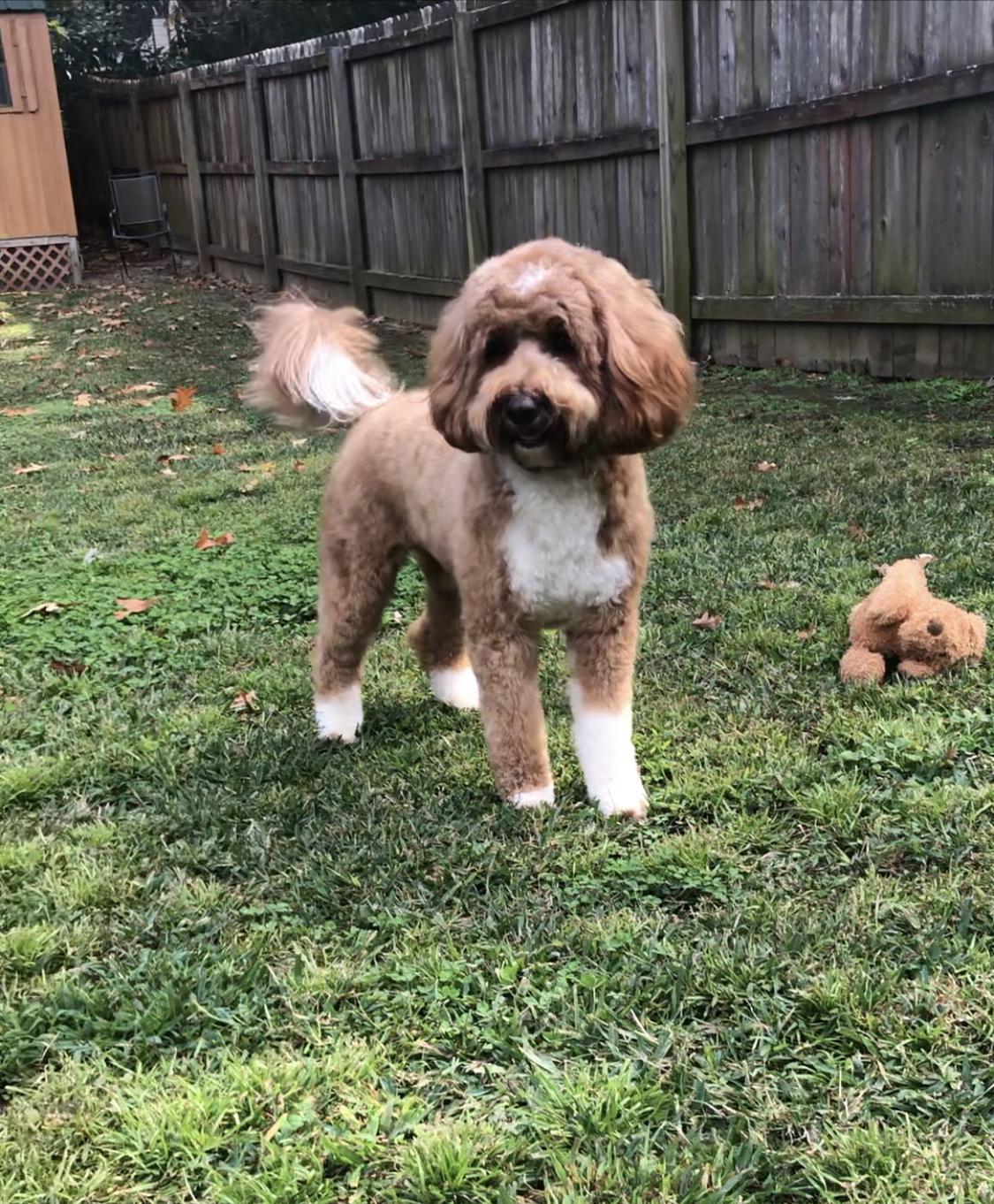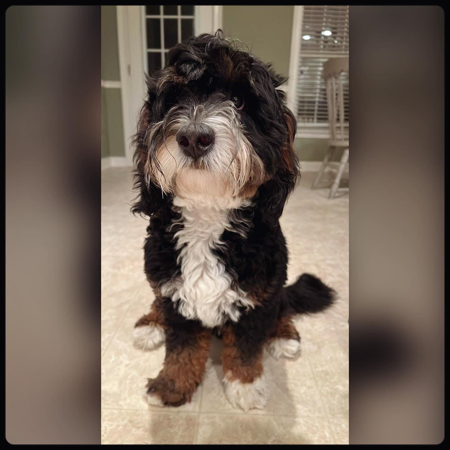 Maverick is a male Bernedoodle. Carefully selected as a great representative of his breed, Candace decided to make him part of their program. Candace has passed Good Dog’s screening process, which involved a review of their breeding practices, environment, and the mental and physical health of their dogs.