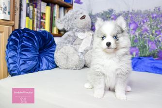I'm Candyland P., the breeder behind Candyland Pomskies located in Orlando, FL. We are proud to offer our beautiful Pomsky puppies to loving homes! Our dogs are healthy, happy, and home-raised. We are passionate breeders and are dedicated to maintaining responsible breeding practices. We do all that we can to make sure our pups get the best care and go to the best homes!