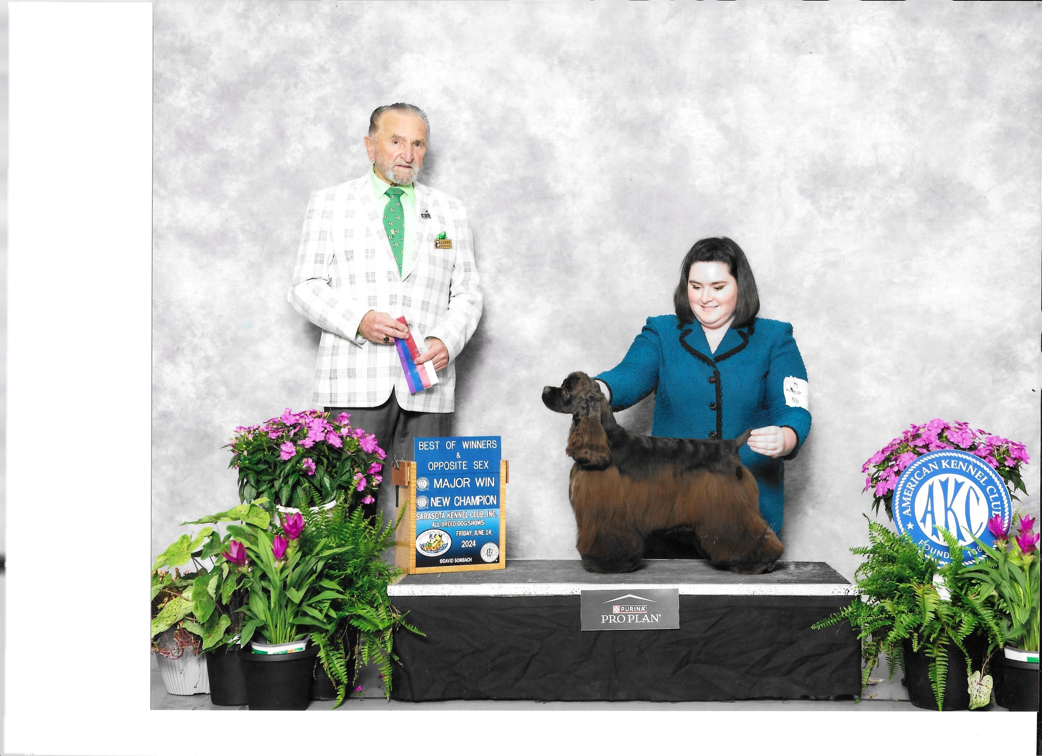 I rescued my first Cocker, Sprinkles, from animal control. She was the start of my love for the Cocker Spaniel. I purchased two females in 2006 and started to show them in September of 2007. Kiwi finished in May of 2008. Then I purchased Freeze from Jackie Cavallin in 2008 and Vanna from Becki Buss in 2009.