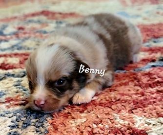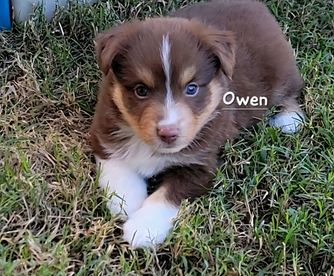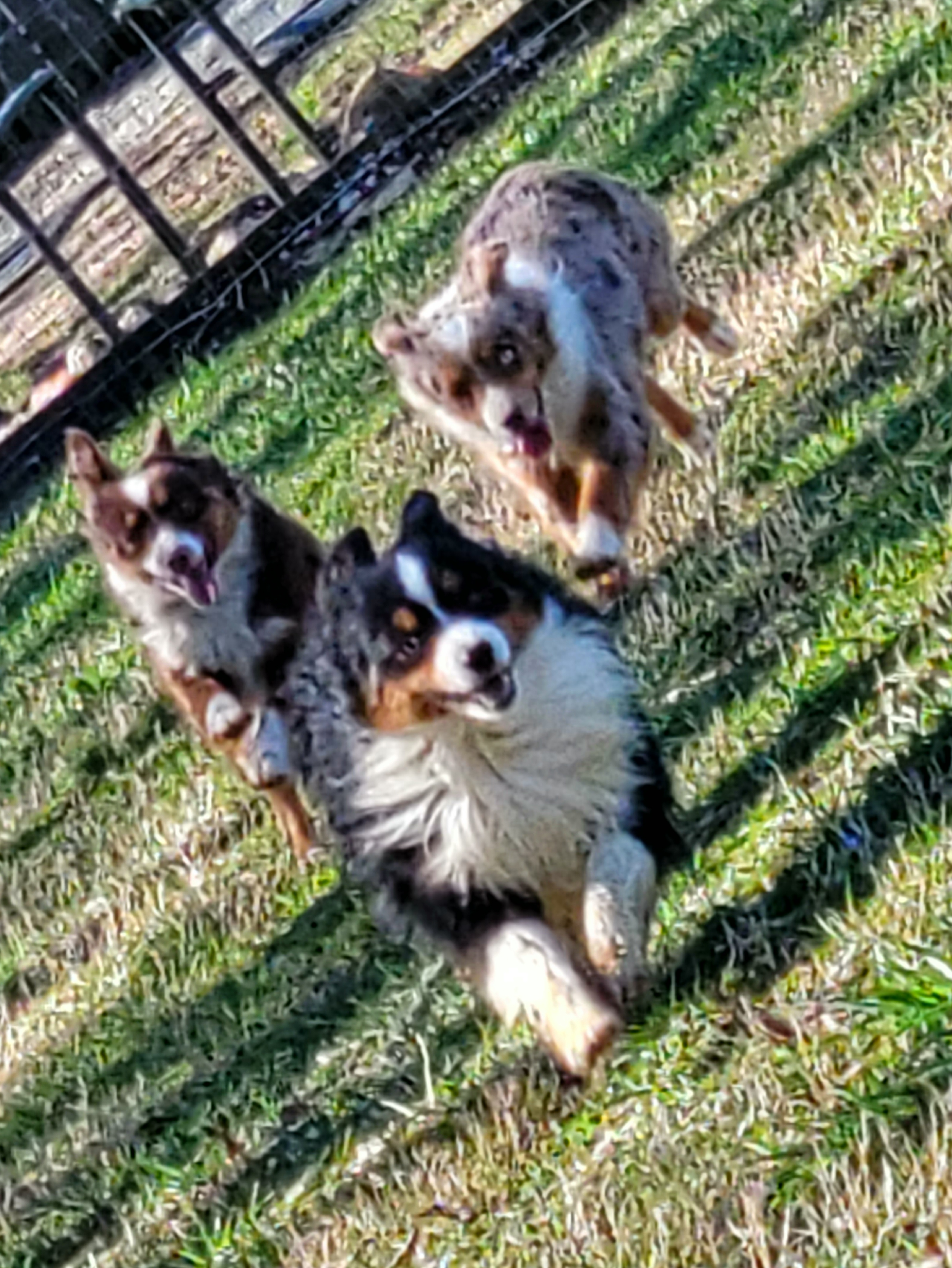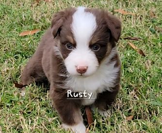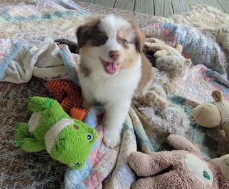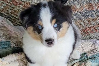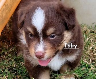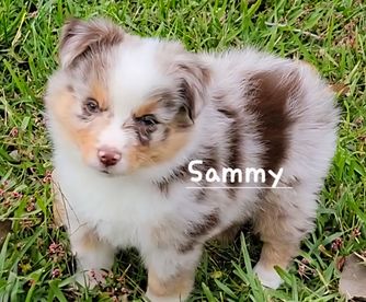Our Miniature American Shepherd puppies include red tri-color, black tri, red merle, and blue merle. Miniature Australian Shepherd puppies include blue merle, black tri, red merle, and red. Colors will vary depending on the parent dogs.