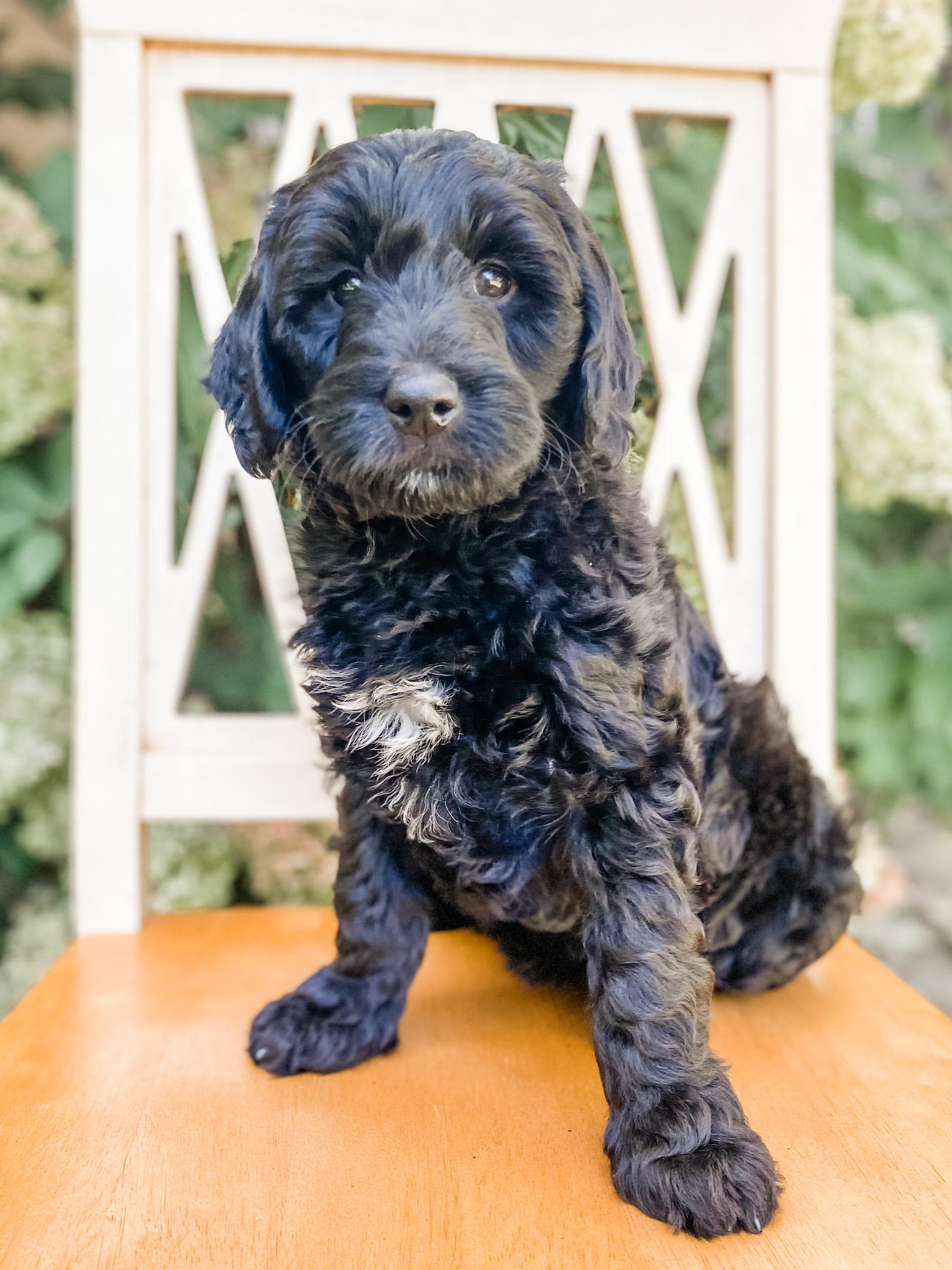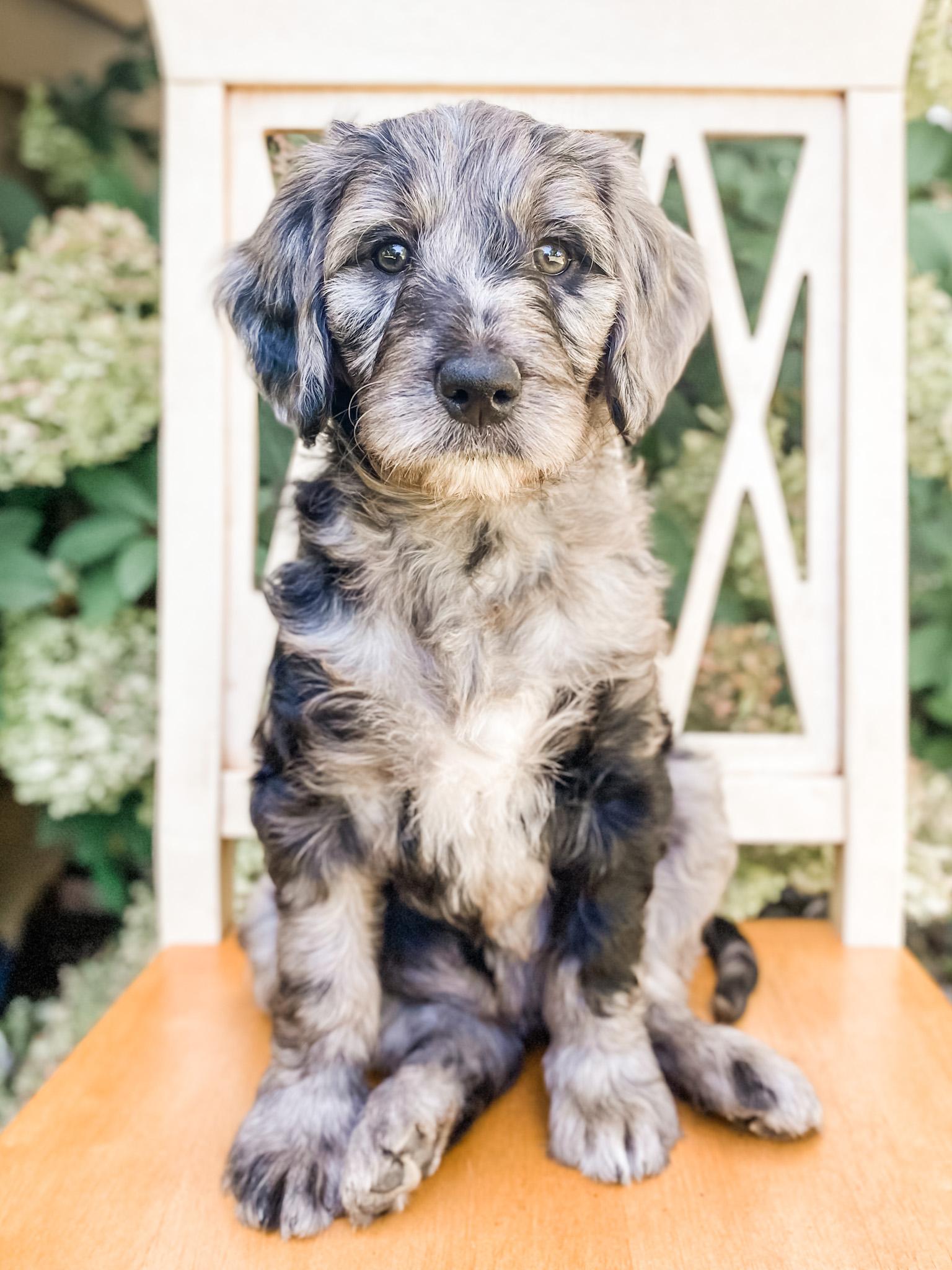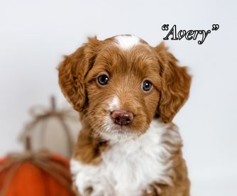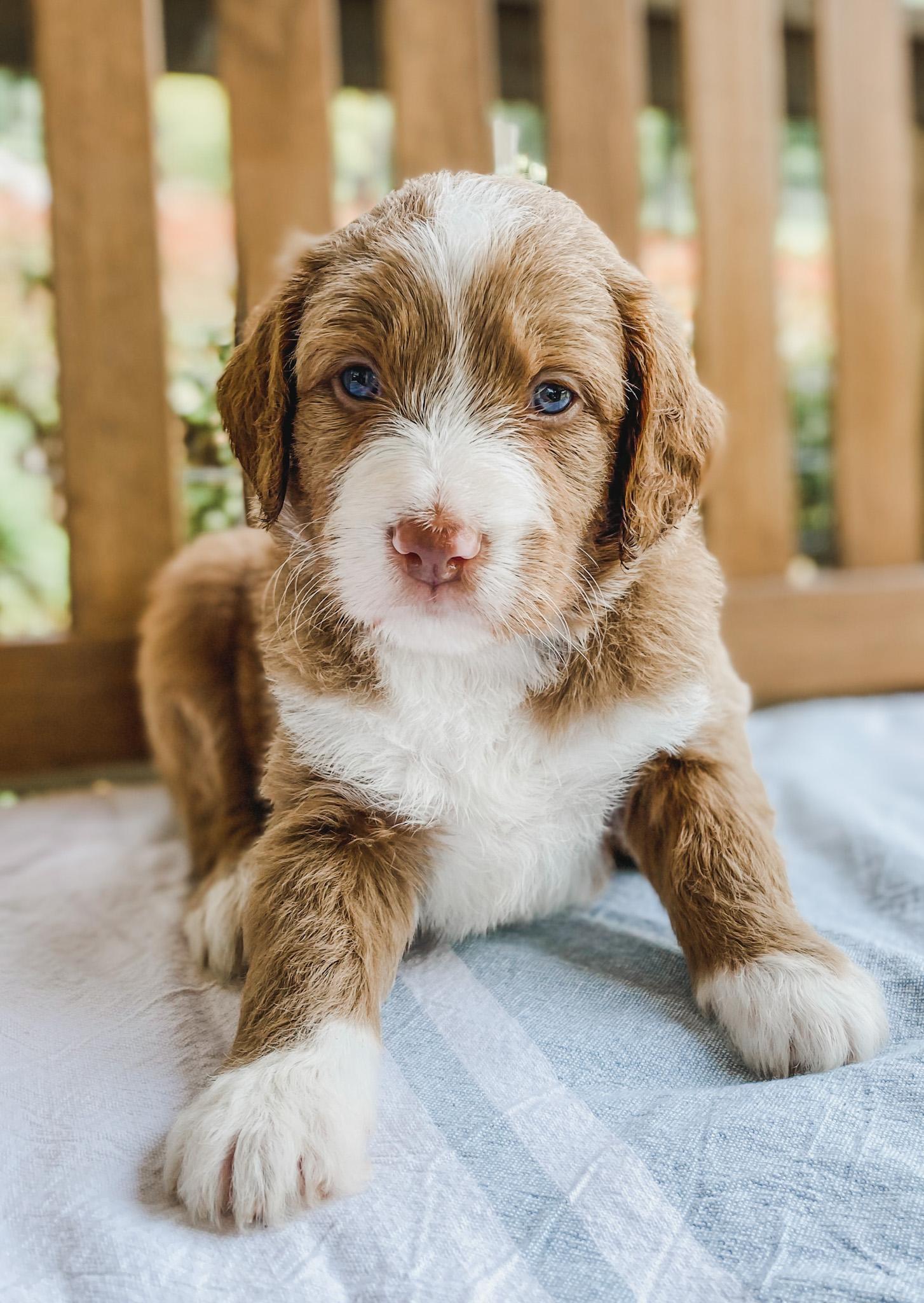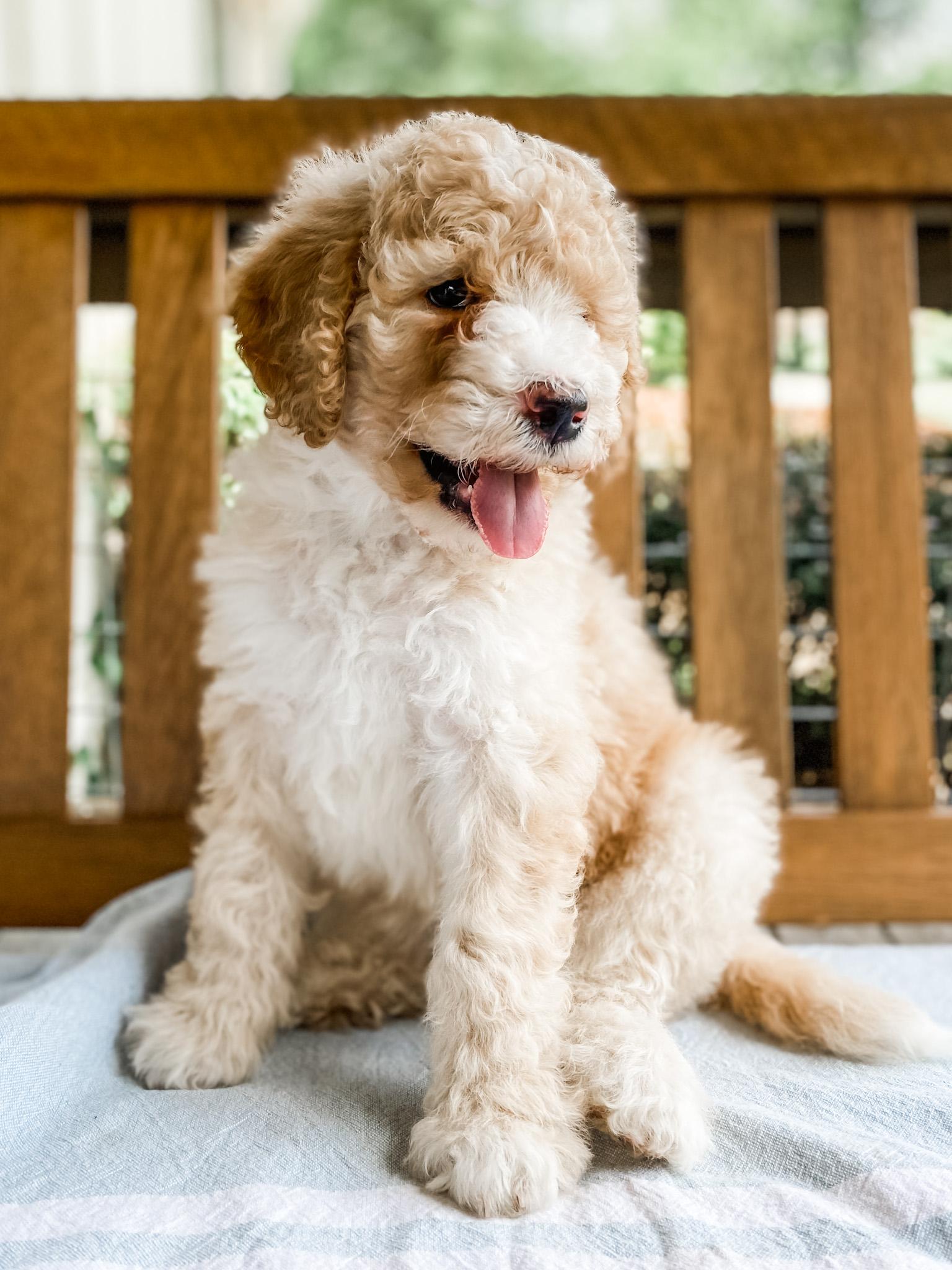 Our Aussiedoodle puppies include apricot, brown and white, blue merle, red merle, black phantom, black and white, black tri-color, red phantom, and red tri-color. Goldendoodle puppies include cream, apricot, red, black, phantom, merle, and parti. Colors will vary depending on the parent dogs.