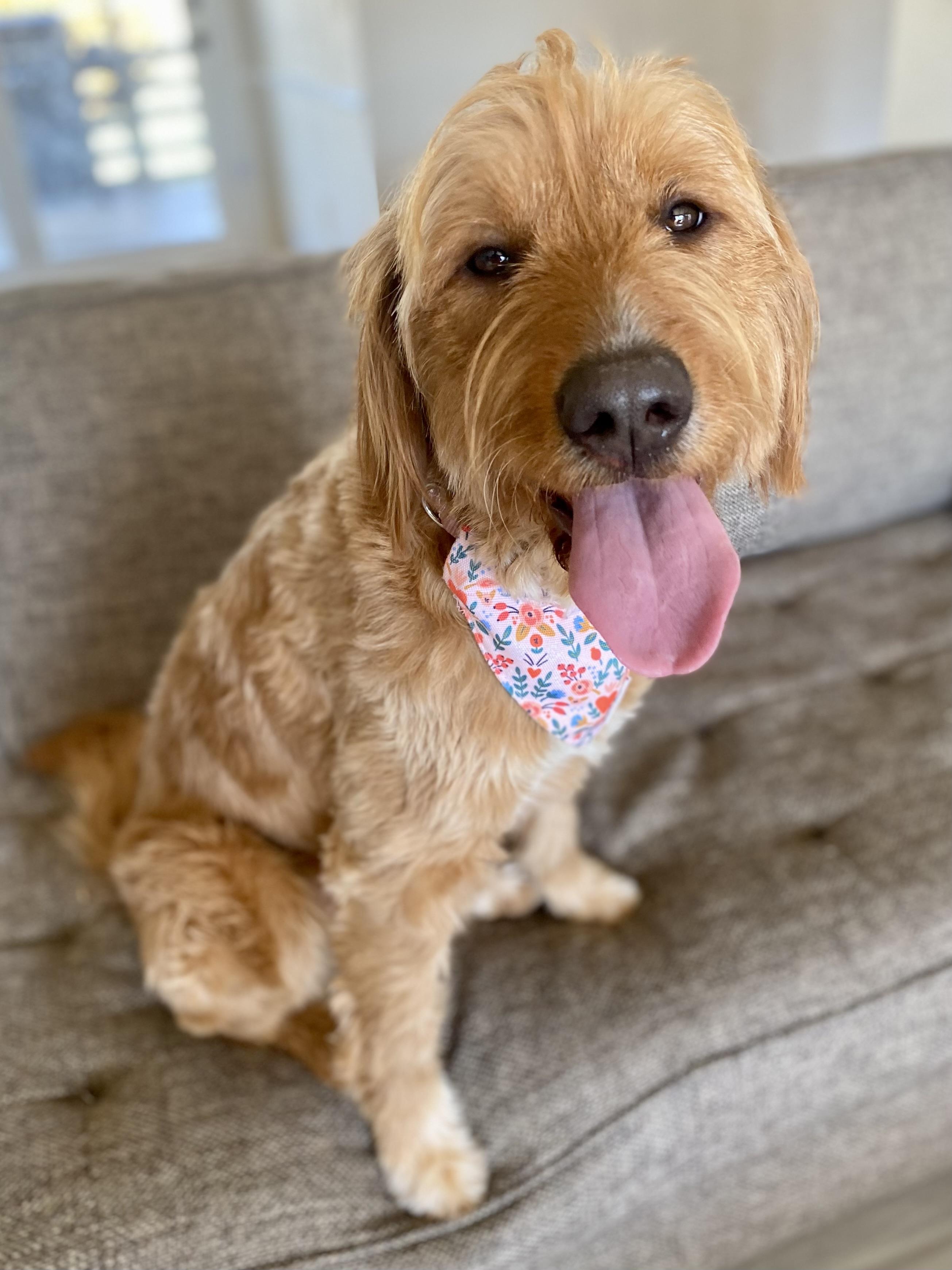 Penny is a female Goldendoodle. Carefully selected as a great representative of her breed, Cara decided to make her part of their program. Cara has passed Good Dog’s screening process, which involved a review of their breeding practices, environment, and the mental and physical health of their dogs.