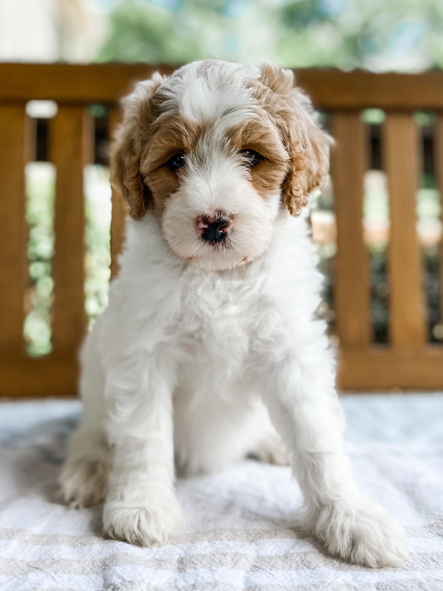 Winnie is a female Aussiedoodle. Carefully selected as a great representative of her breed, Cara decided to make her part of their program. Cara has passed Good Dog’s screening process, which involved a review of their breeding practices, environment, and the mental and physical health of their dogs.