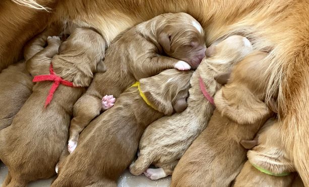Our Goldendoodle puppies include petite, miniature, medium, and standard sizes. Aussiedoodle puppies include mini and standard sizes. Sizes will vary depending on the parent dogs.