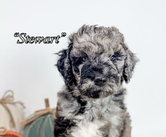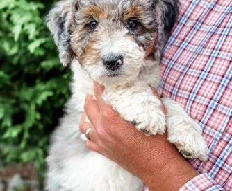 Our Goldendoodle puppies include cream, apricot, red, black, phantom, merle, and parti. Aussiedoodle puppies include apricot, brown and white, blue merle, red merle, black phantom, black and white, black tri-color, red phantom, and red tri-color. Colors will vary depending on the parent dogs.
