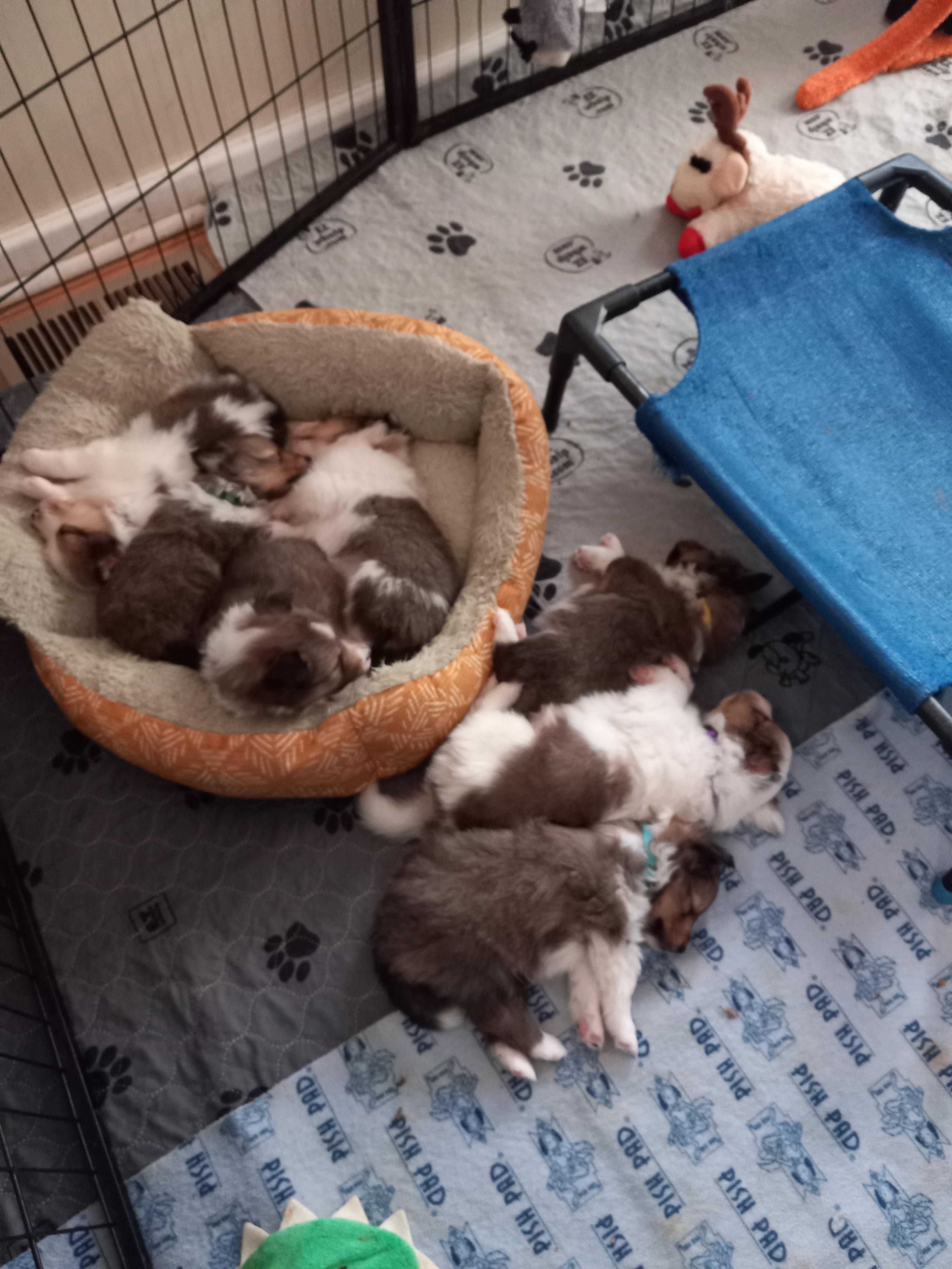 Our puppies are sable and white. Colors will vary depending on the parent dogs.