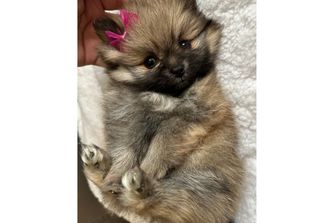 Introducing Mia, the empitome of ELEGANCE in our Pomeranian Family. Mia weighs 5lbs and her sable colored fur glistens with every step-showcasing her beauty. Despite her tiny frame, Mia possesses a bold and confident demeanor, ruling over her domain with grace and poise. Her favorite treats includes banana's, liver bites and the occasional taste of salmon. With a loving heart and gentle spirit, Mia is not just a dam; she's the cornerstone of our breeding program, and we're thrilled to share her exceptional qualities with you!