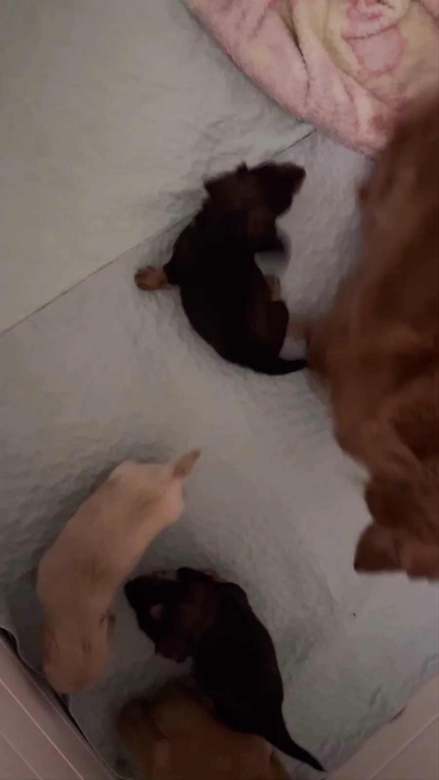 Snuggly chilly morning! All babies have their eyes open now I will get better pics of them this afternoon.