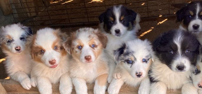 We have had our original line of AKC Aussies for many years, while being extremely selective on the new bloodlines we have added over the years. We love our dogs and strive to produce puppies that other families will love just as much. We have return customers every year, some are on their 3rd generation of dogs from our farm. That is the kind of quality and connection we strive for.