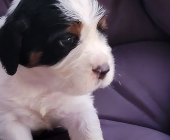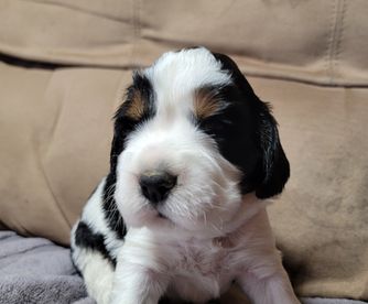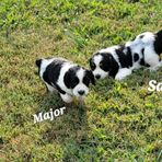 Our puppies include black white and tan, liver and white, and black and white. Colors will vary depending on the parent dogs.