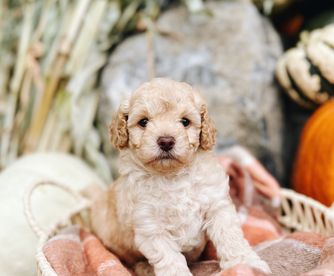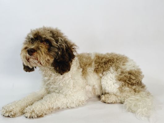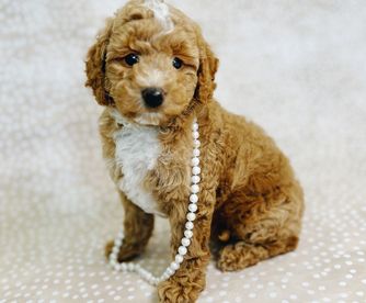 Maisie was bred and kept by our program she comes from our favorite Cavapoo female that is now retired, her dad is one of our most laid back stud poodles! She takes after both parents and is a very intelligent and calm girl. She’s sweet and loving and the perfect small family dog with a beautiful confirmation and coloring!